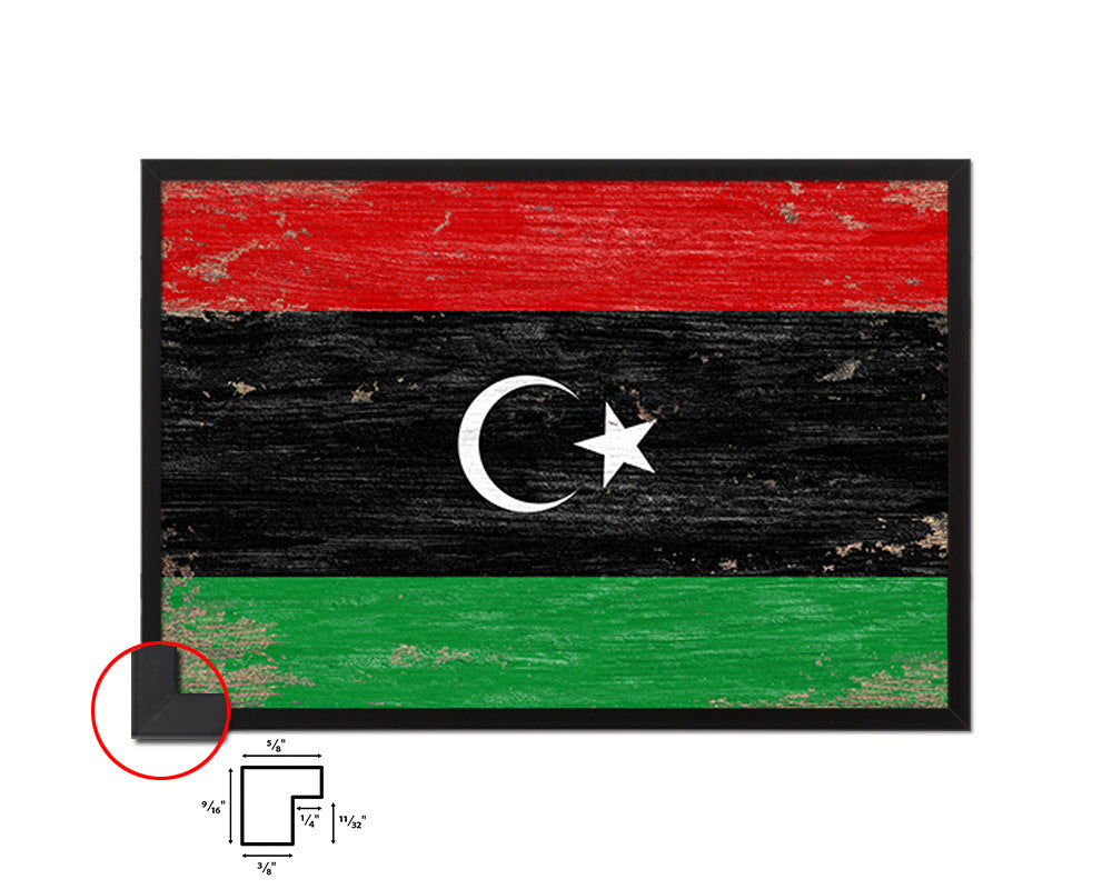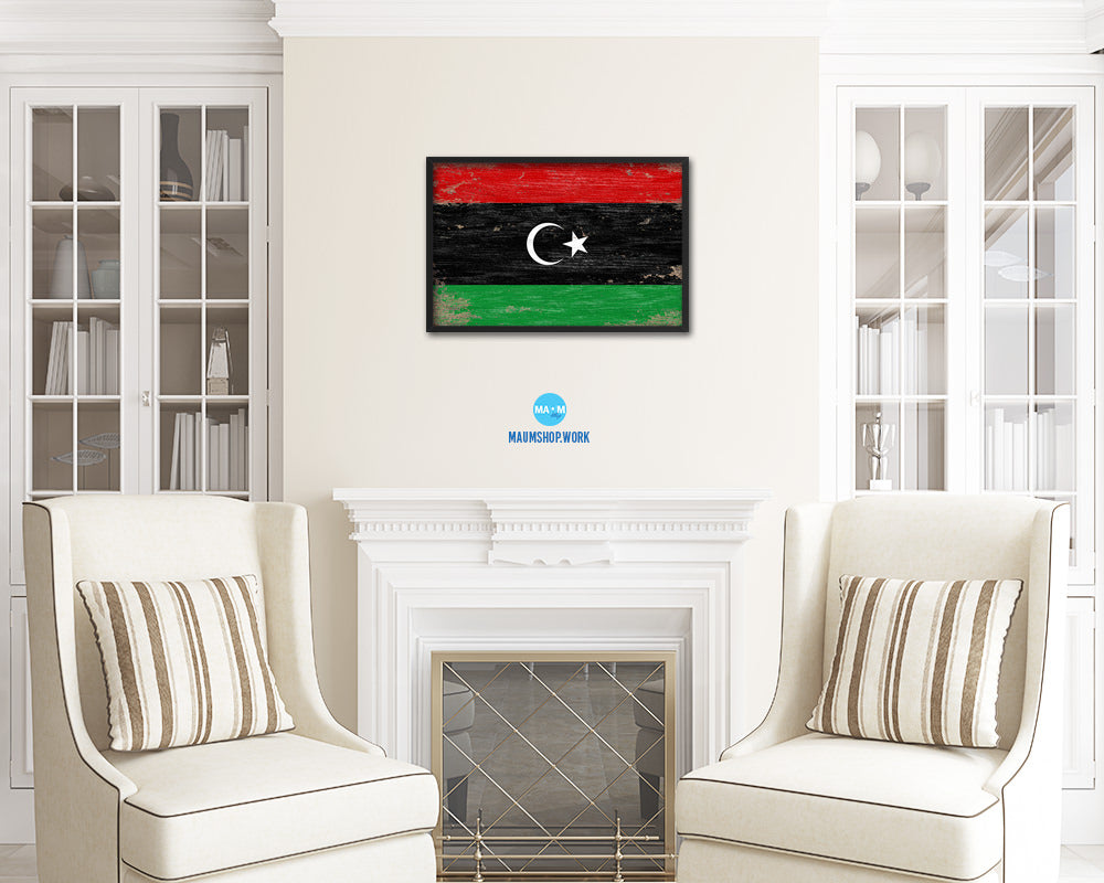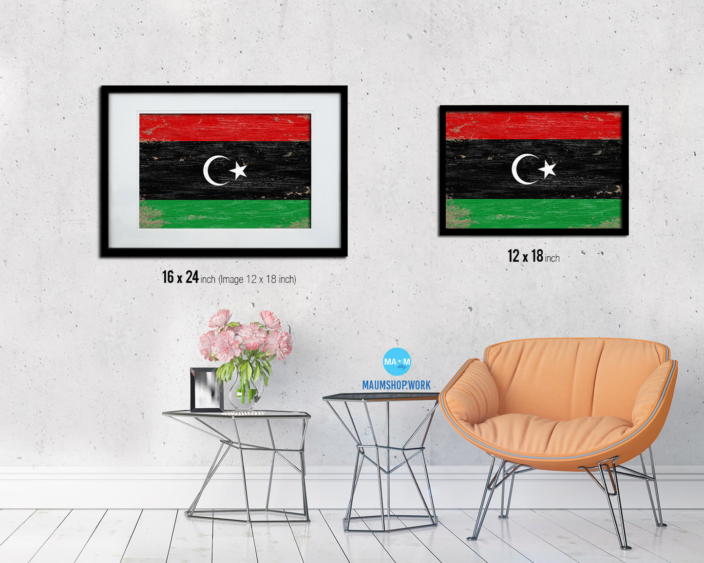 Libya Shabby Chic Country Flag Wood Framed Print Wall Art Decor Gifts
