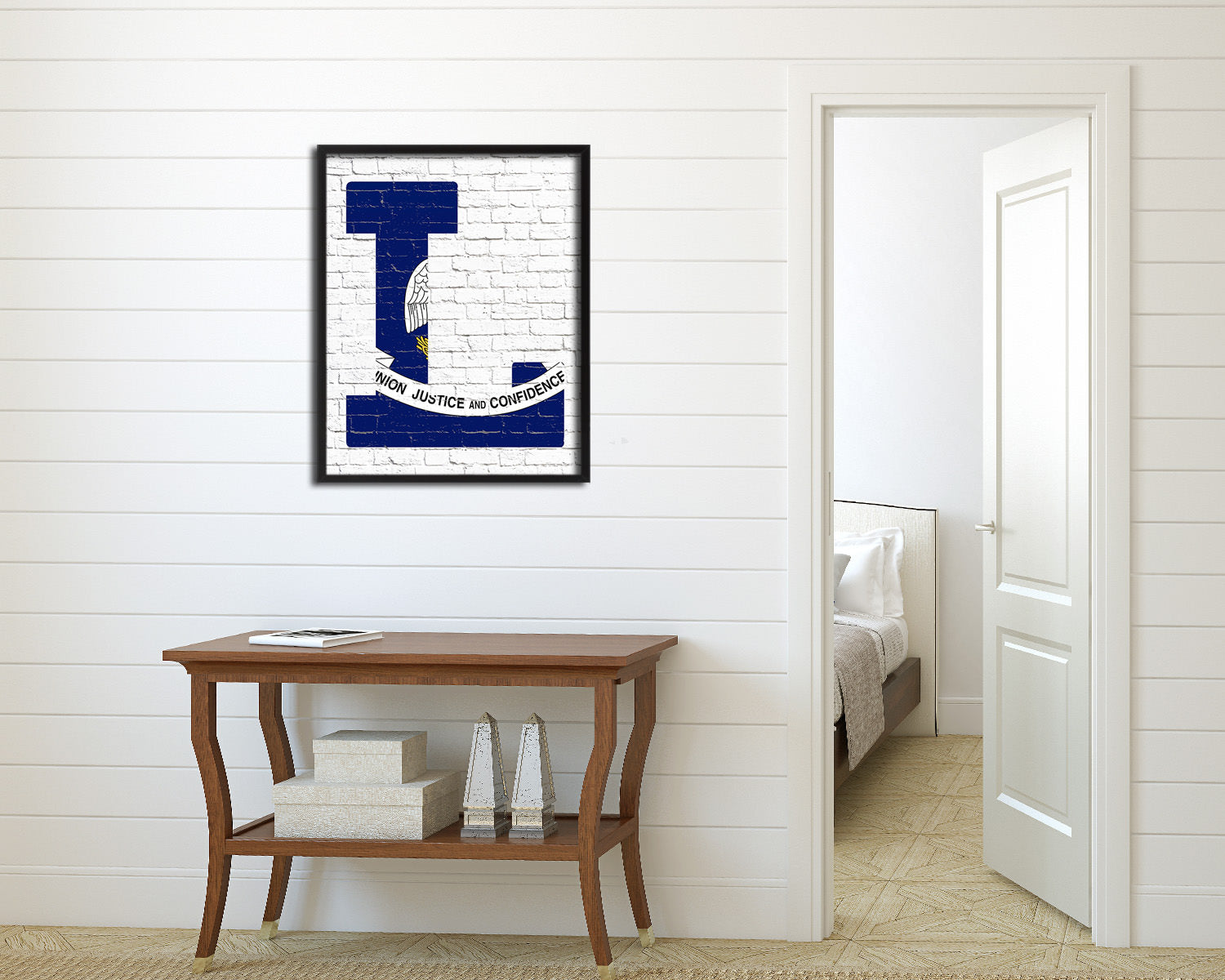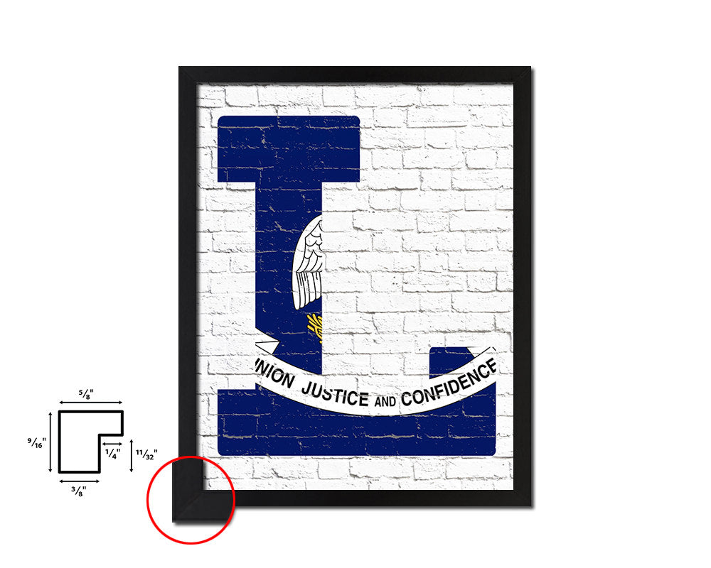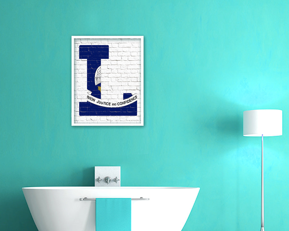 Louisiana State Initial Flag Wood Framed Paper Print Decor Wall Art Gifts, Brick
