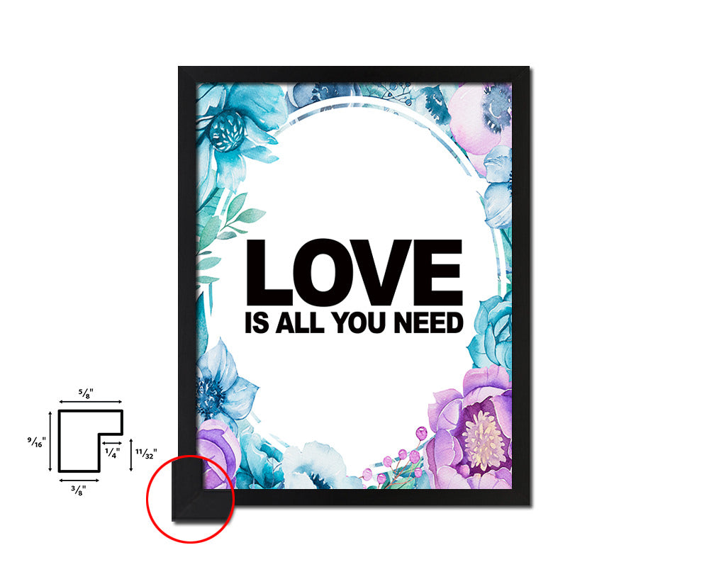 Love is all you need Quote Boho Flower Framed Print Wall Decor Art
