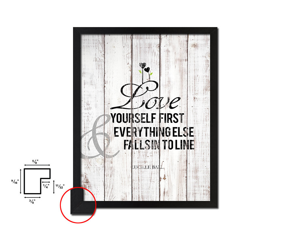 Love yourself first White Wash Quote Framed Print Wall Decor Art
