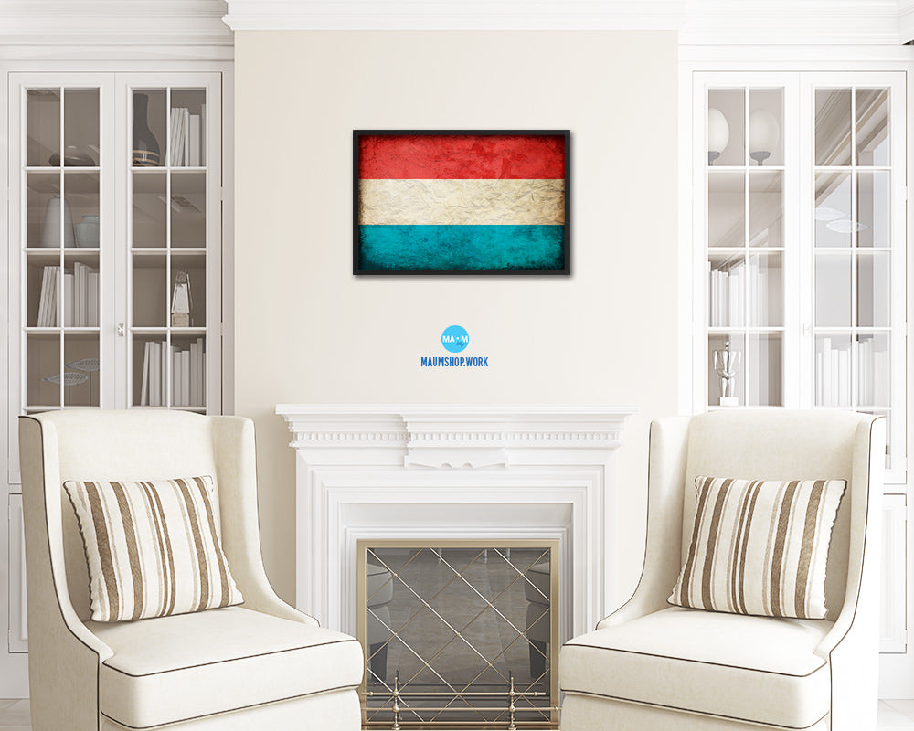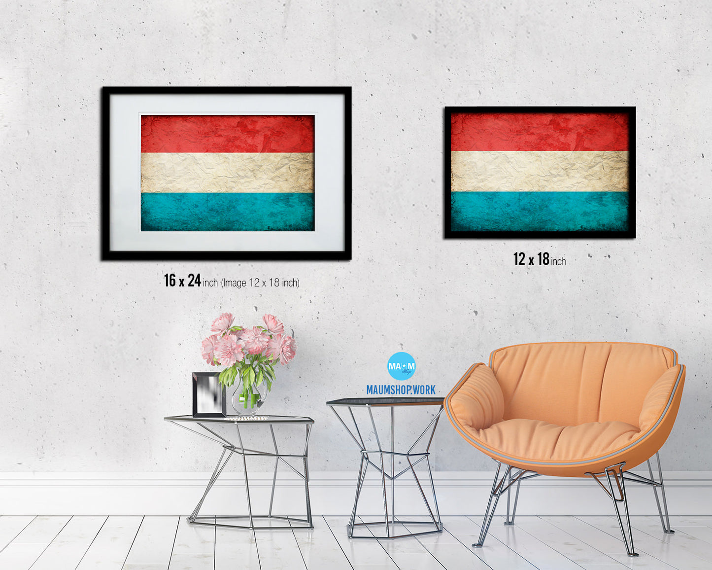 Luxembourg Country Vintage Flag Wood Framed Print Wall Art Decor Gifts