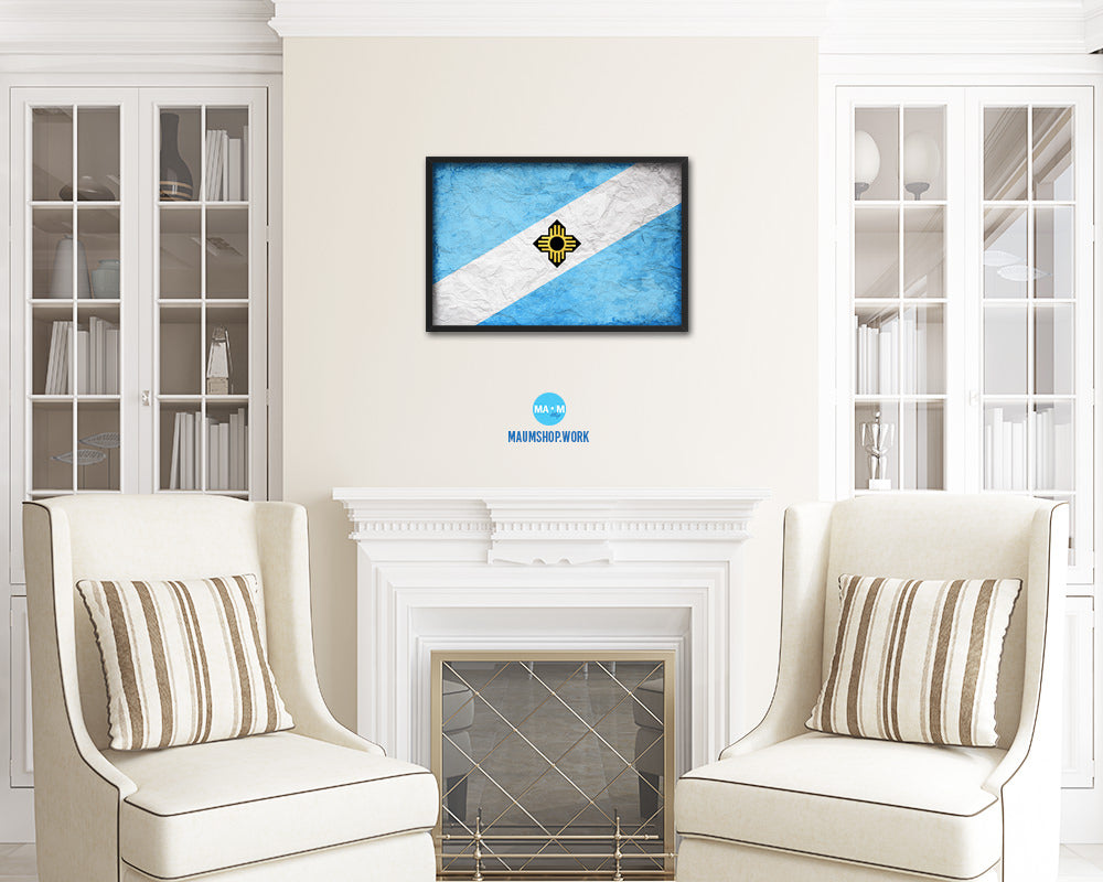 Madison City Wisconsin State Vintage Flag Wood Framed Prints Decor Wall Art Gifts