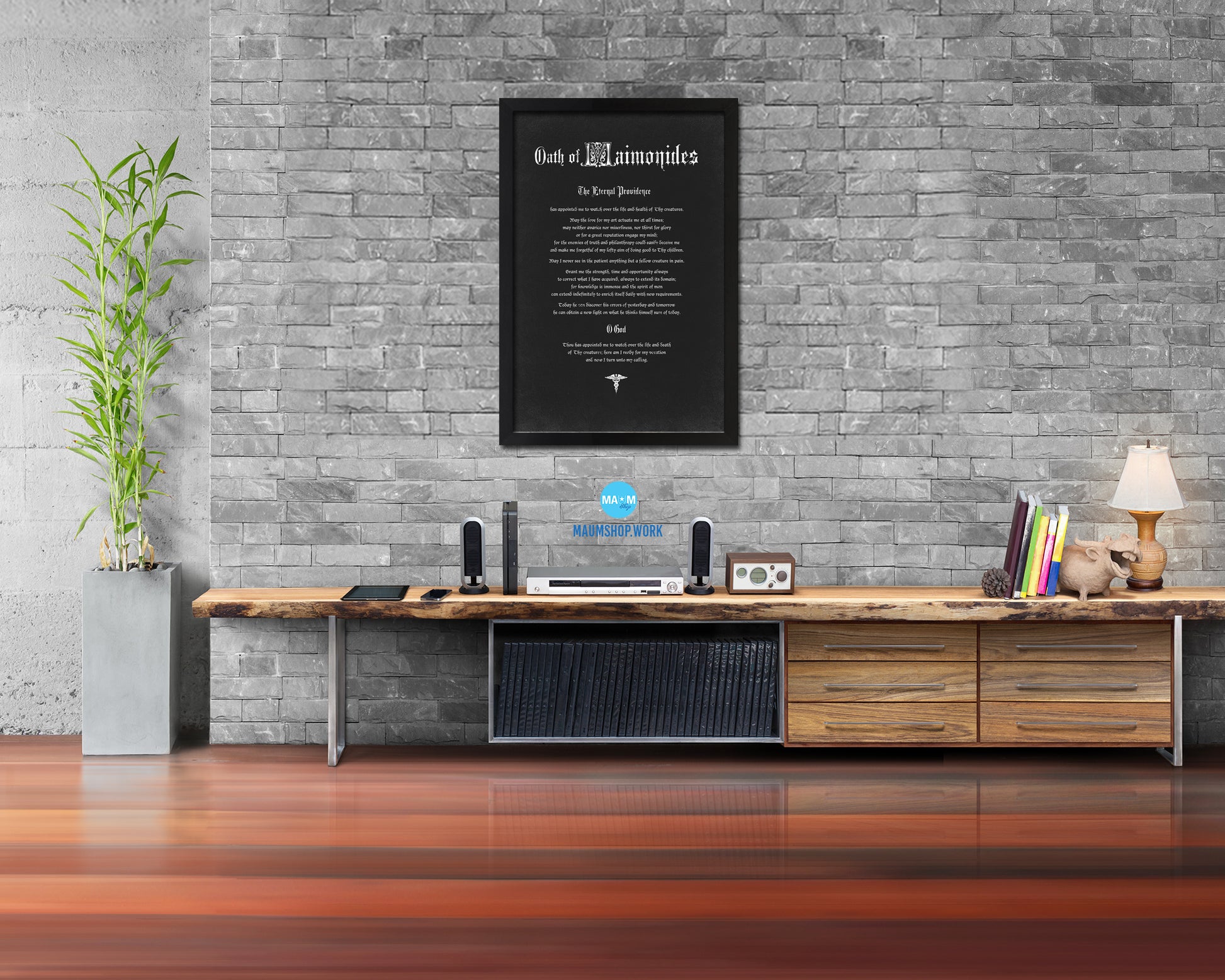 Maimonides Oath Declarations Gifts for Medical Students Doctor Office Decor Wall Art, Black