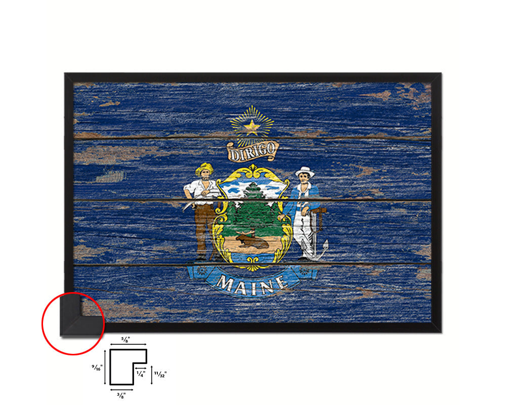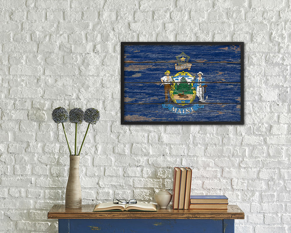 Maine State Rustic Flag Wood Framed Paper Prints Wall Art Decor Gifts