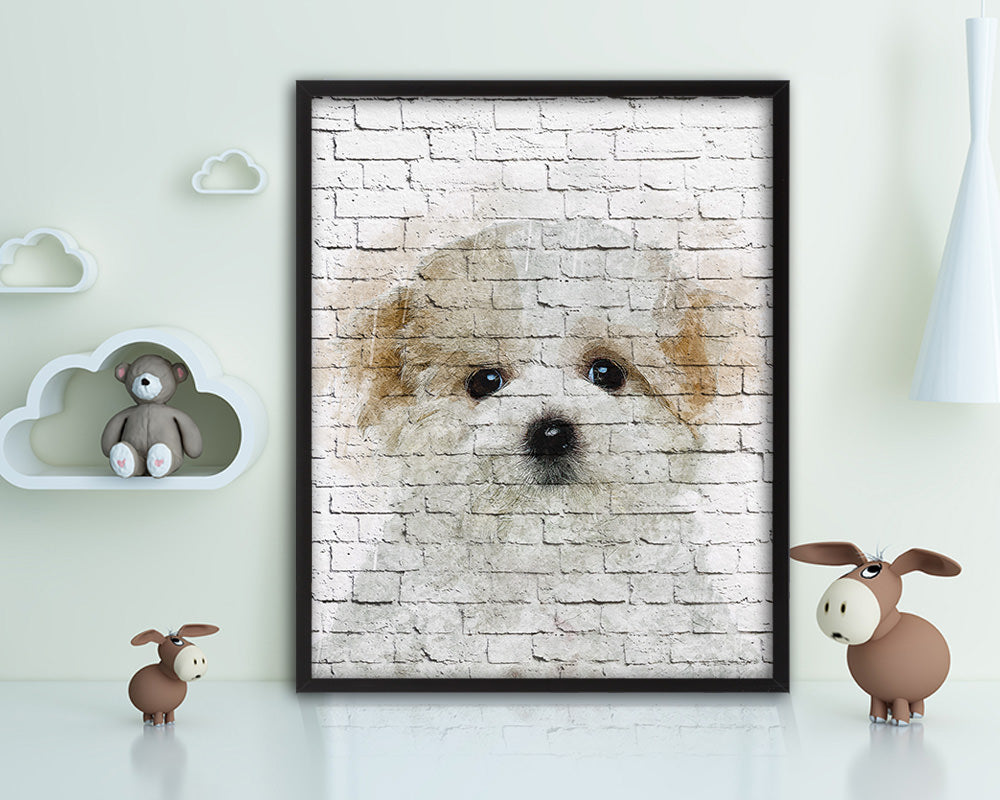 Maltese Dog Puppy Portrait Framed Print Pet Watercolor Wall Decor Art Gifts