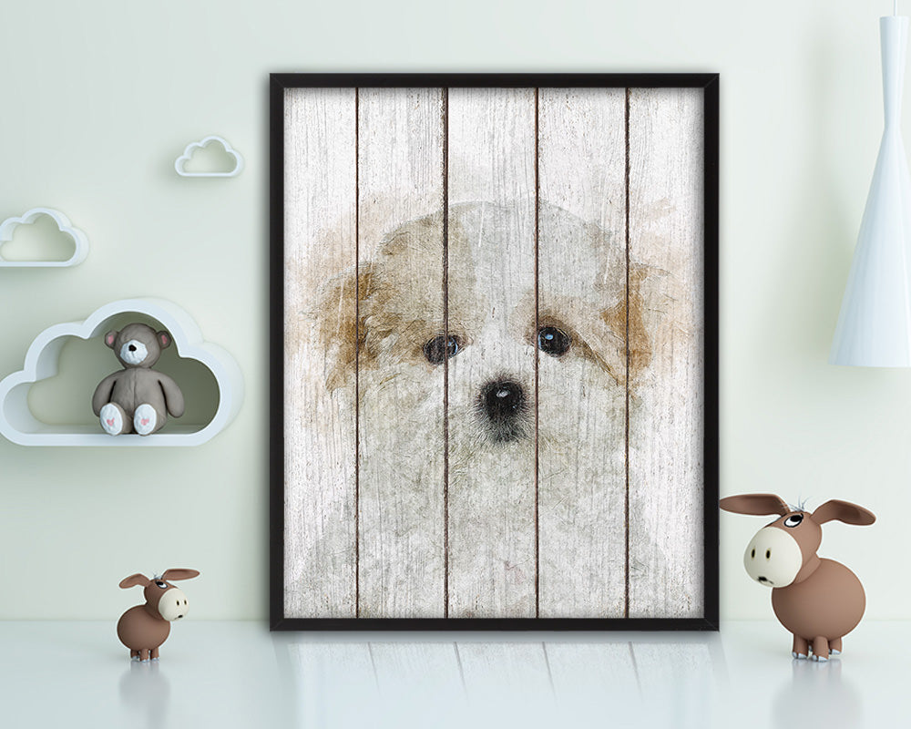 Maltese Dog Puppy Portrait Framed Print Pet Watercolor Wall Decor Art Gifts