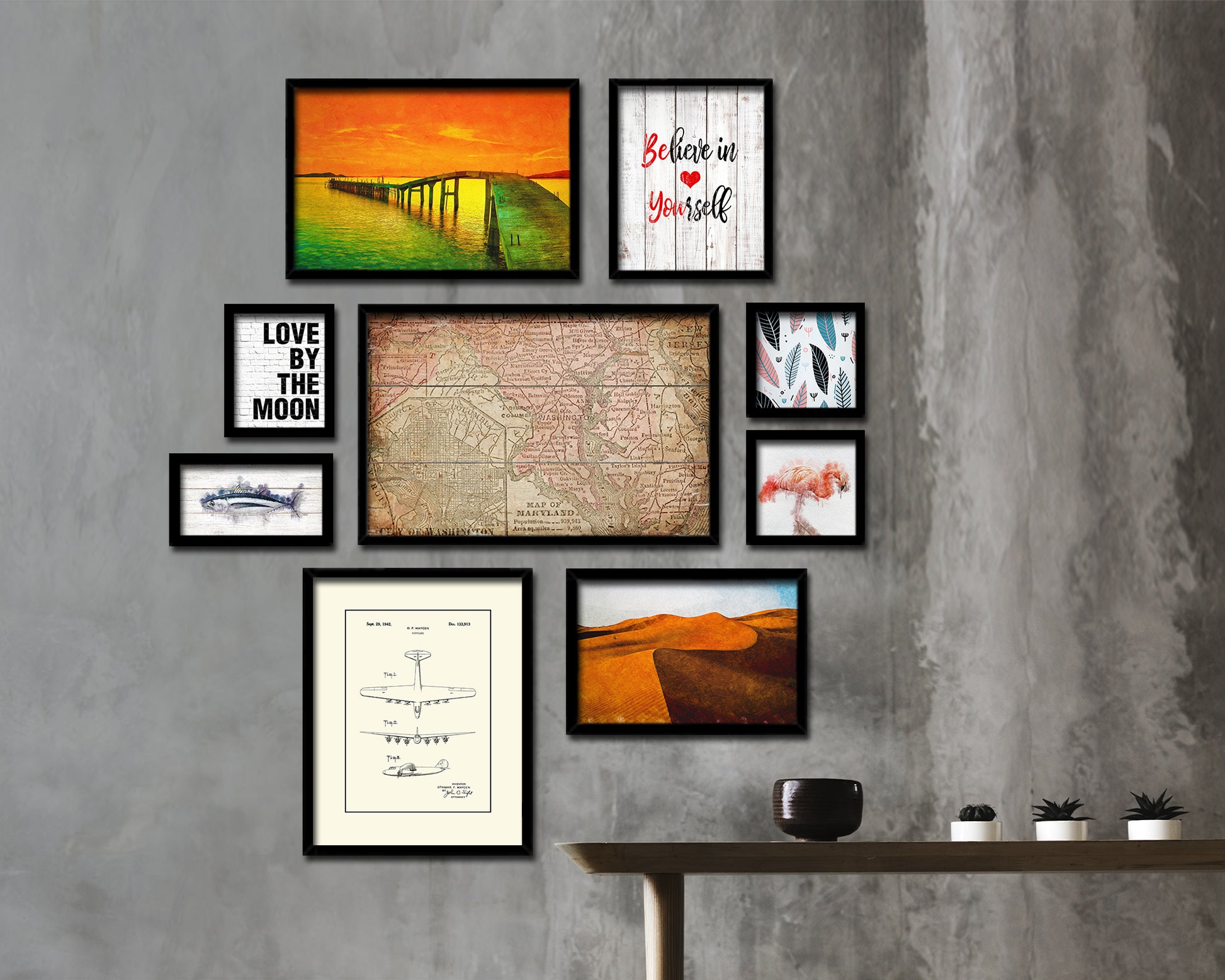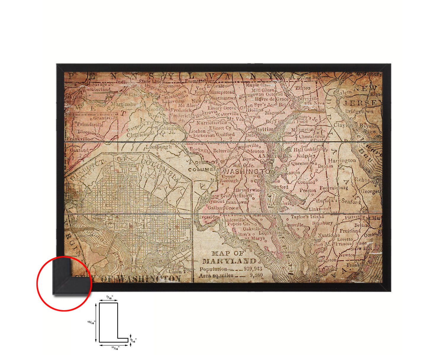 Maryland Circa Antique Map Framed Print Art Wall Decor Gifts