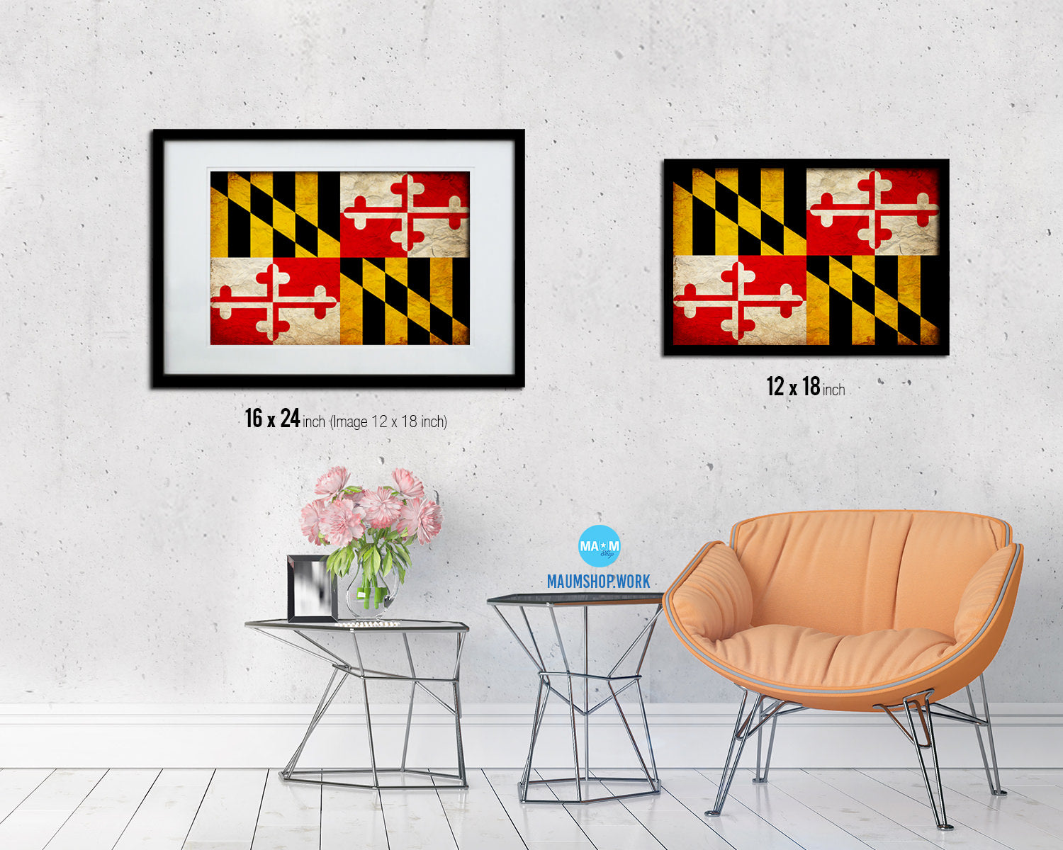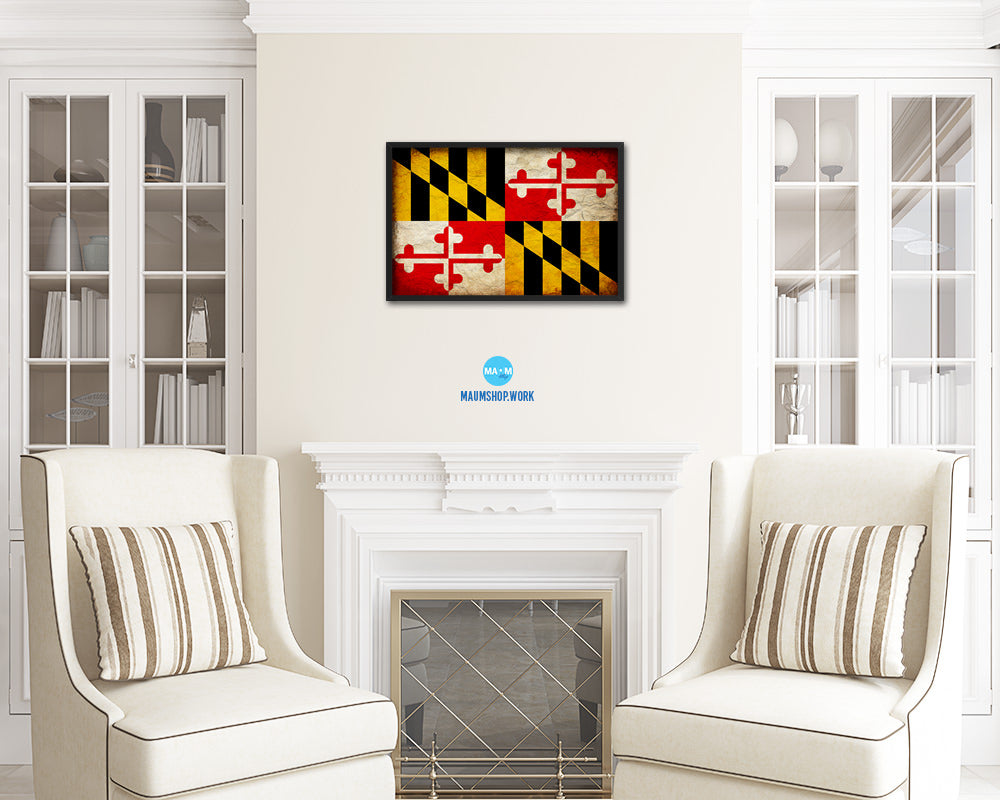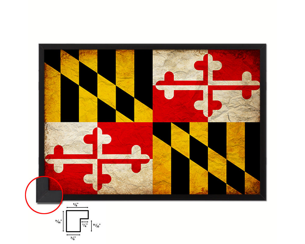 Maryland State Vintage Flag Wood Framed Paper Print Wall Art Decor Gifts