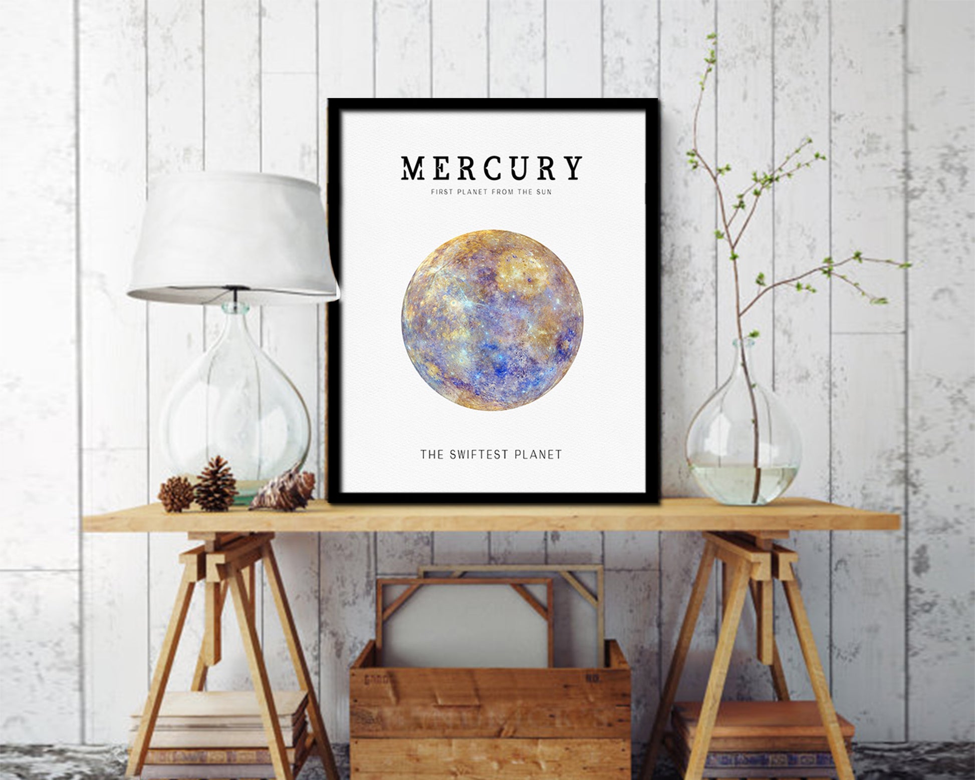 Mercury Planet Prints Watercolor Solar System Wood Framed Paper Print Wall Art Decor Gifts