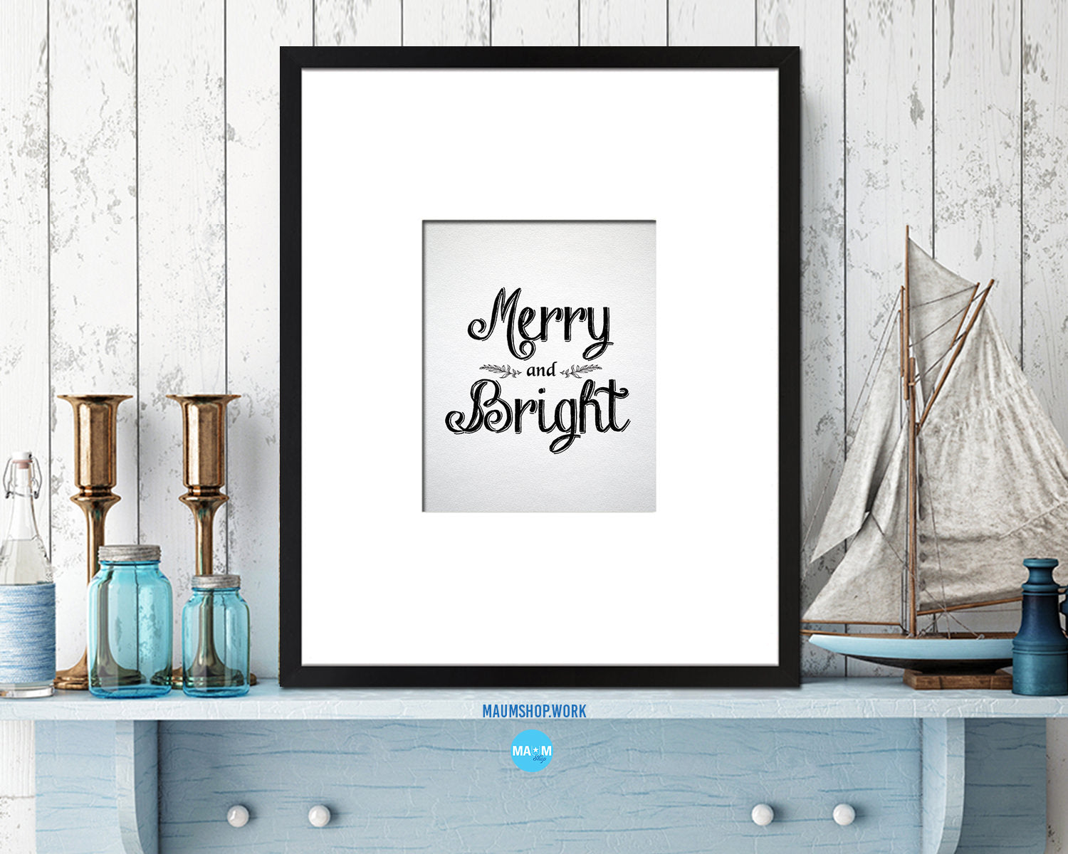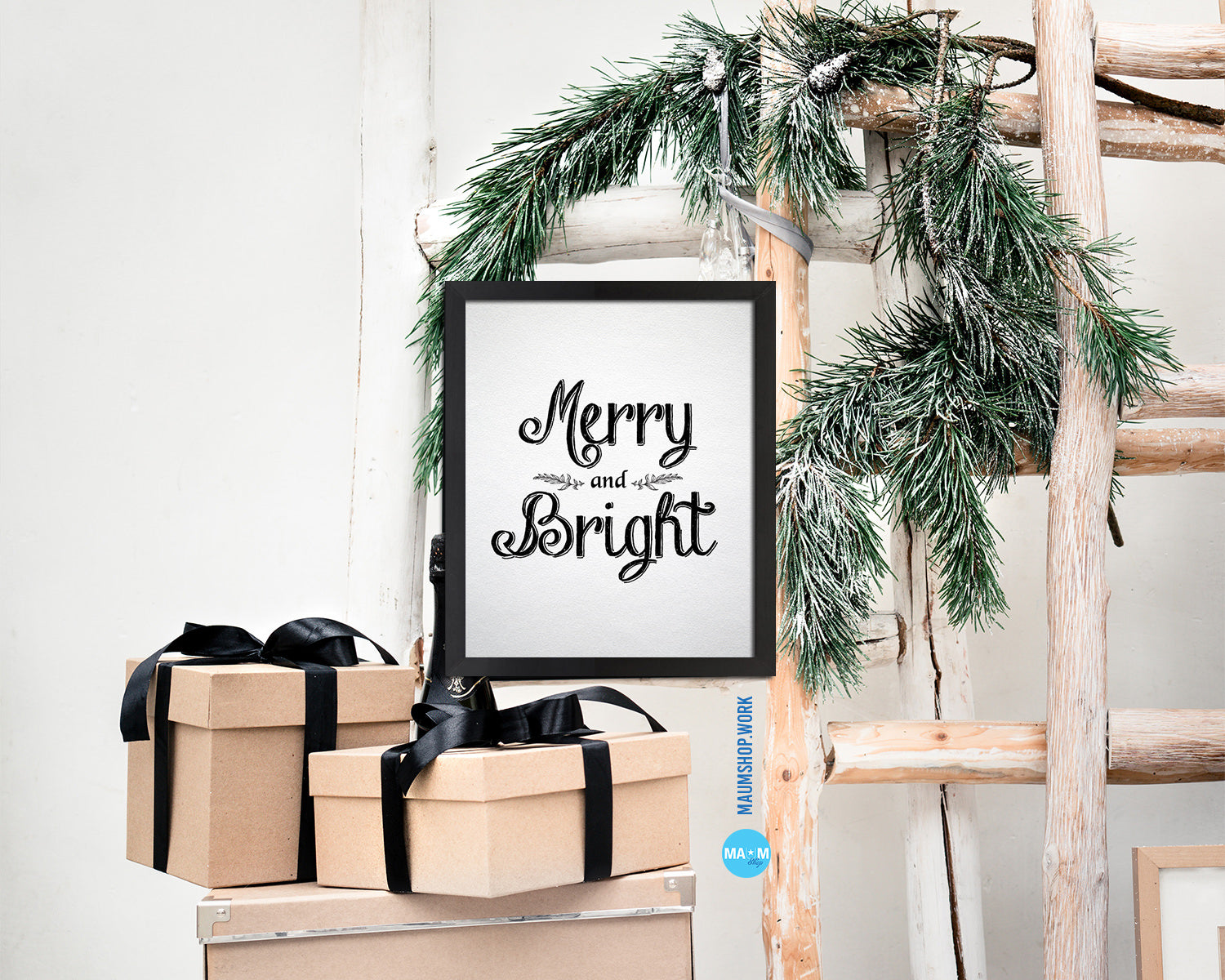 Merry and Bright Holiday Season Gifts Wood Framed Print Home Decor Wall Art
