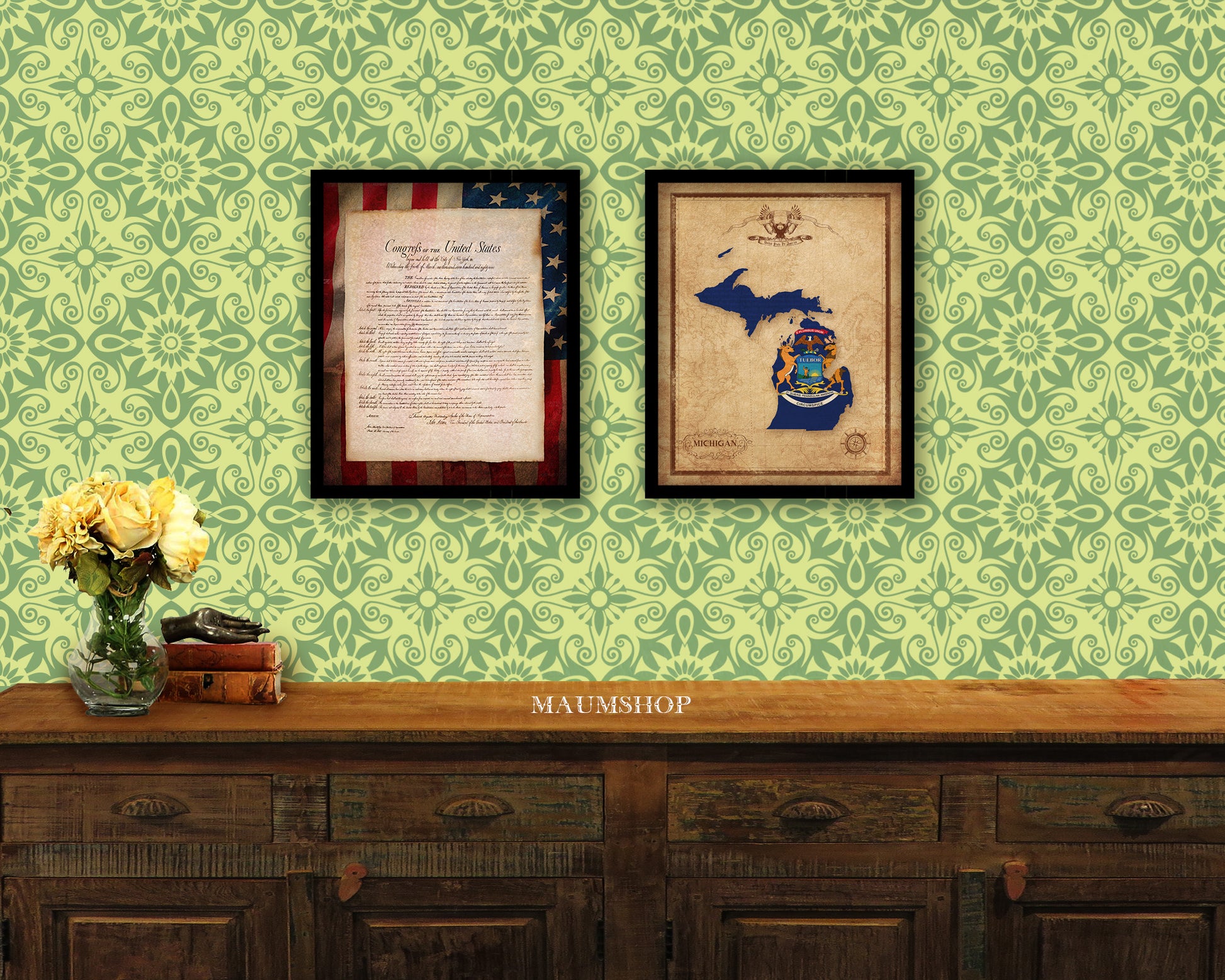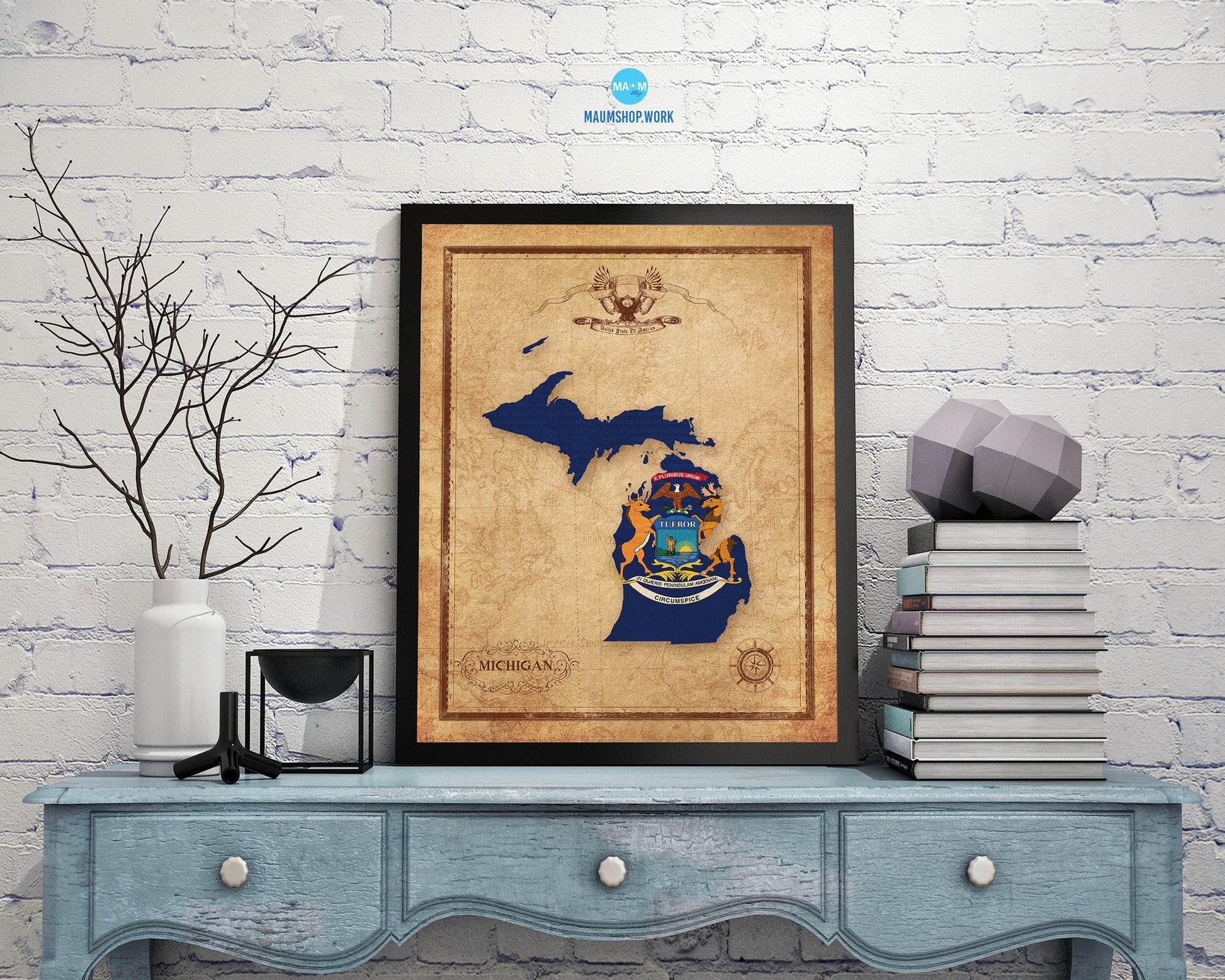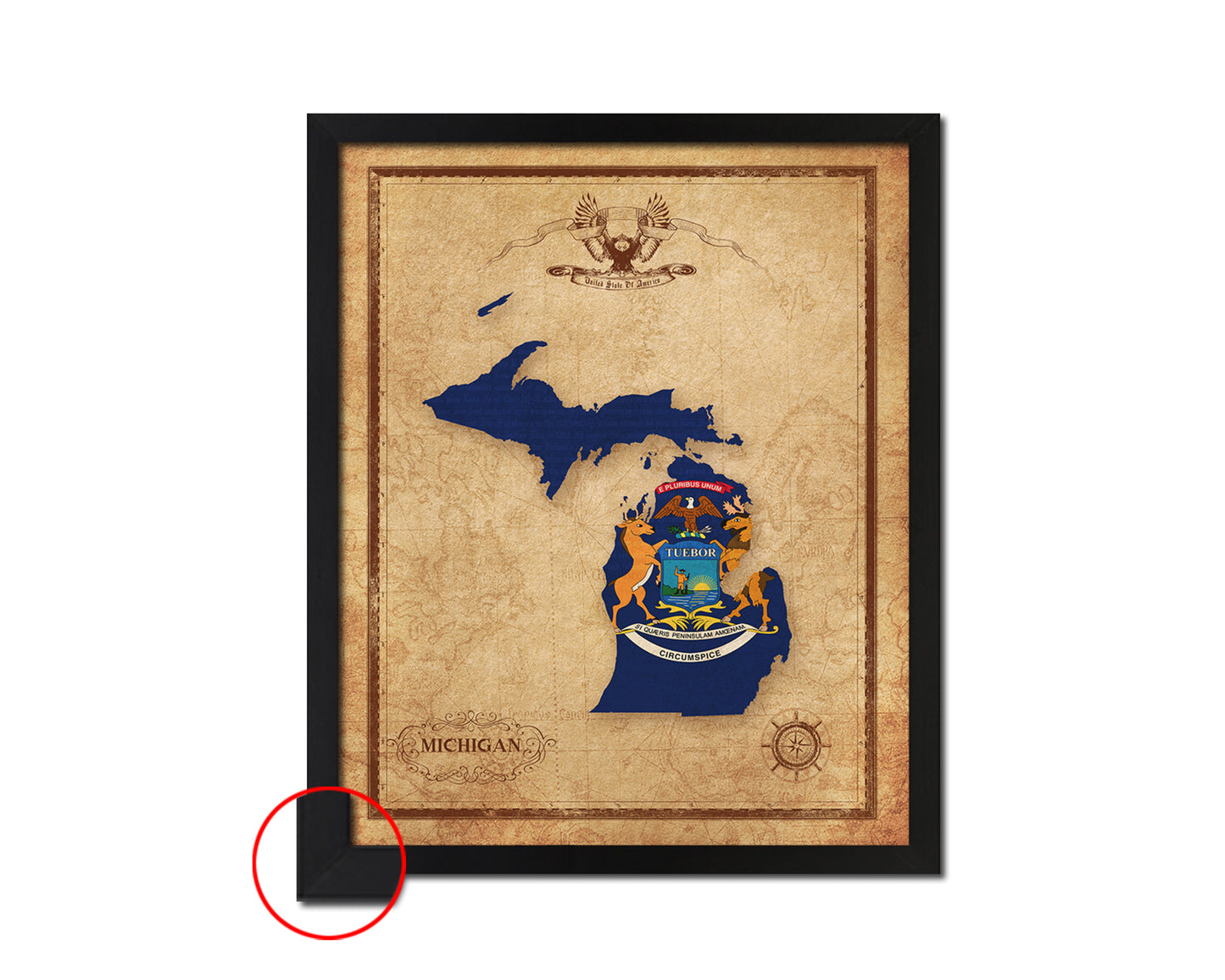 Michigan State Vintage Map Wood Framed Paper Print Wall Art Decor Gifts
