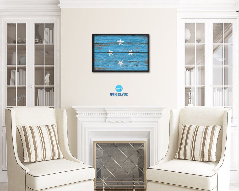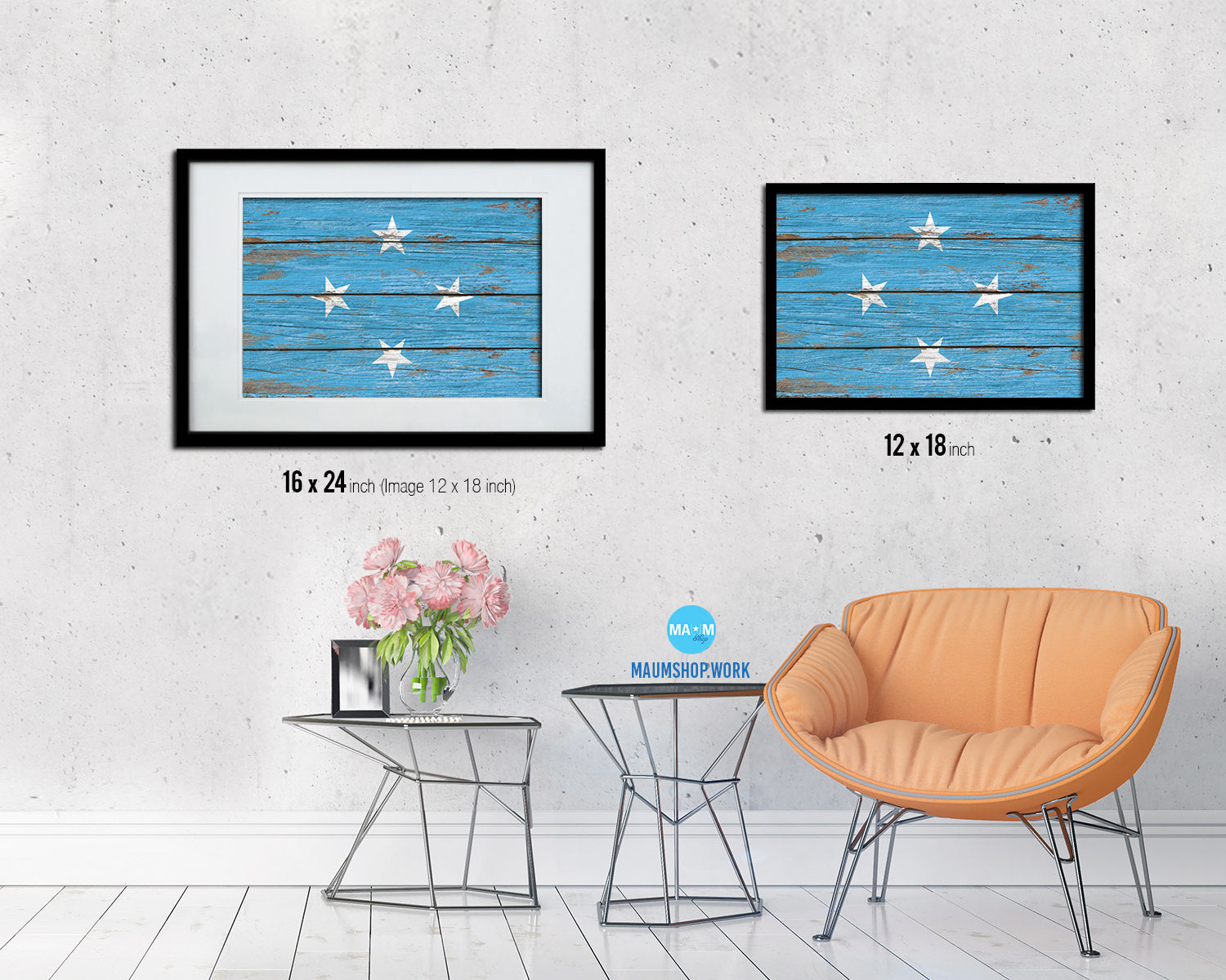 Micronesia Country Wood Rustic National Flag Wood Framed Print Wall Art Decor Gifts