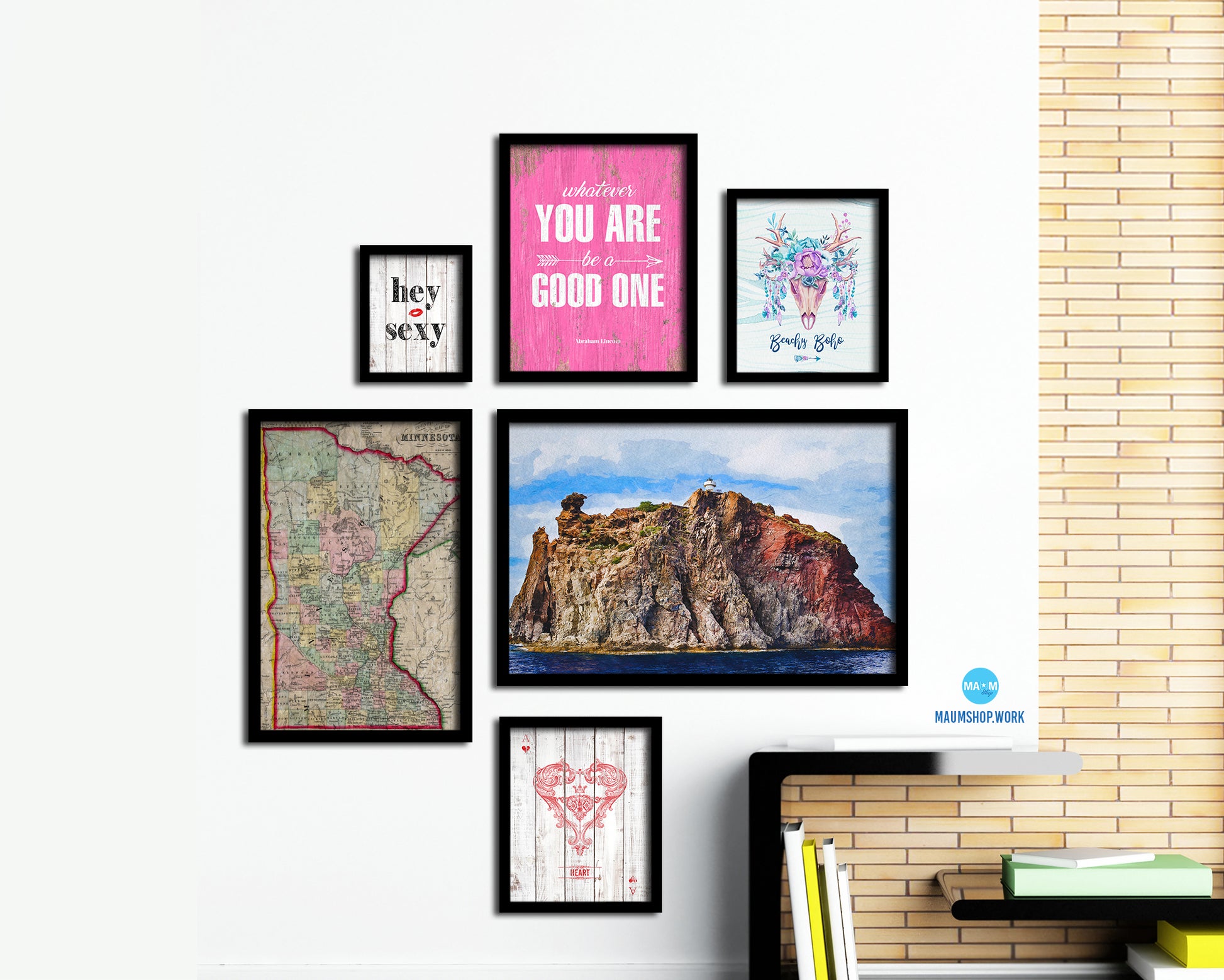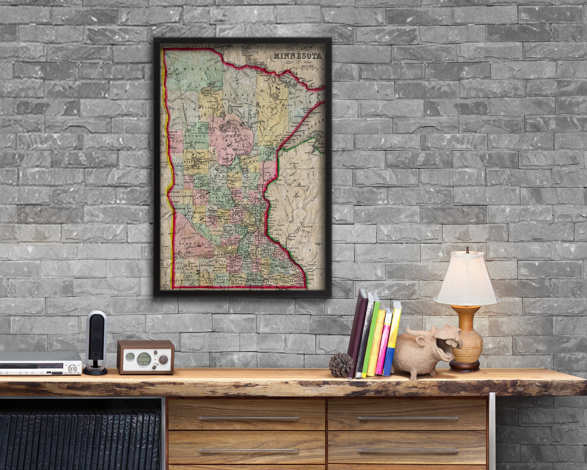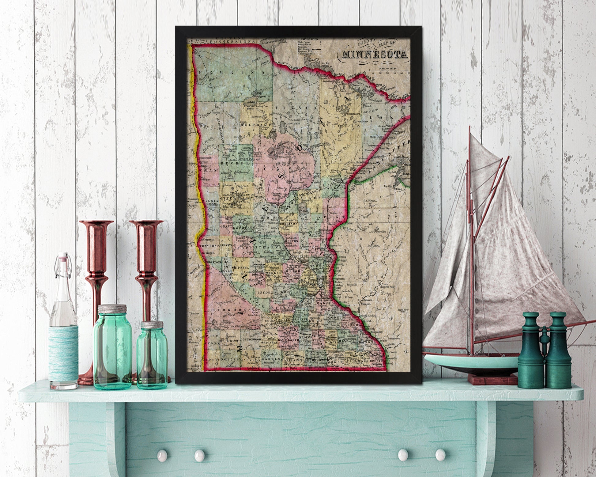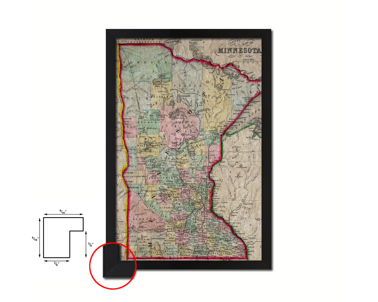 Minnesota Historical Map Wood Framed Print Art Wall Decor Gifts