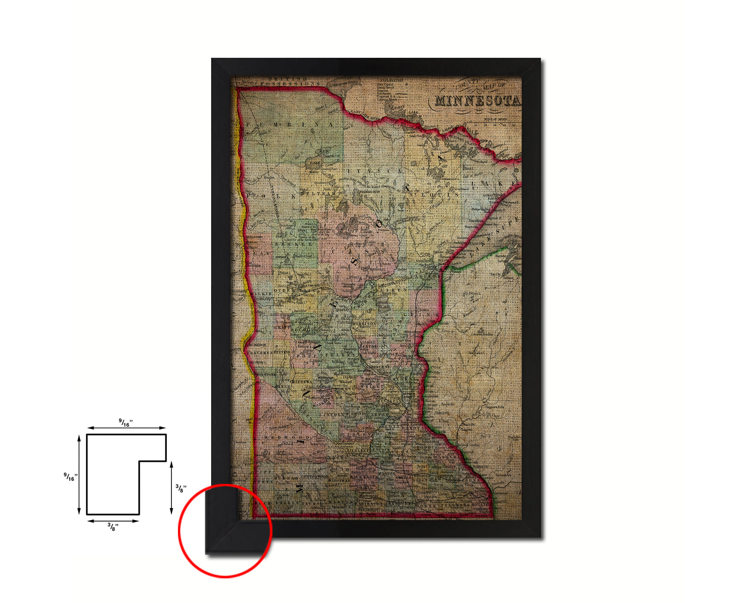 Minnesota Vintage Map Wood Framed Print Art Wall Decor Gifts