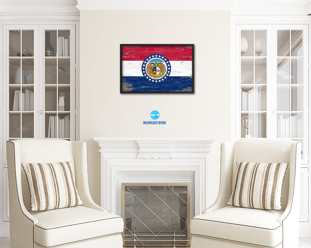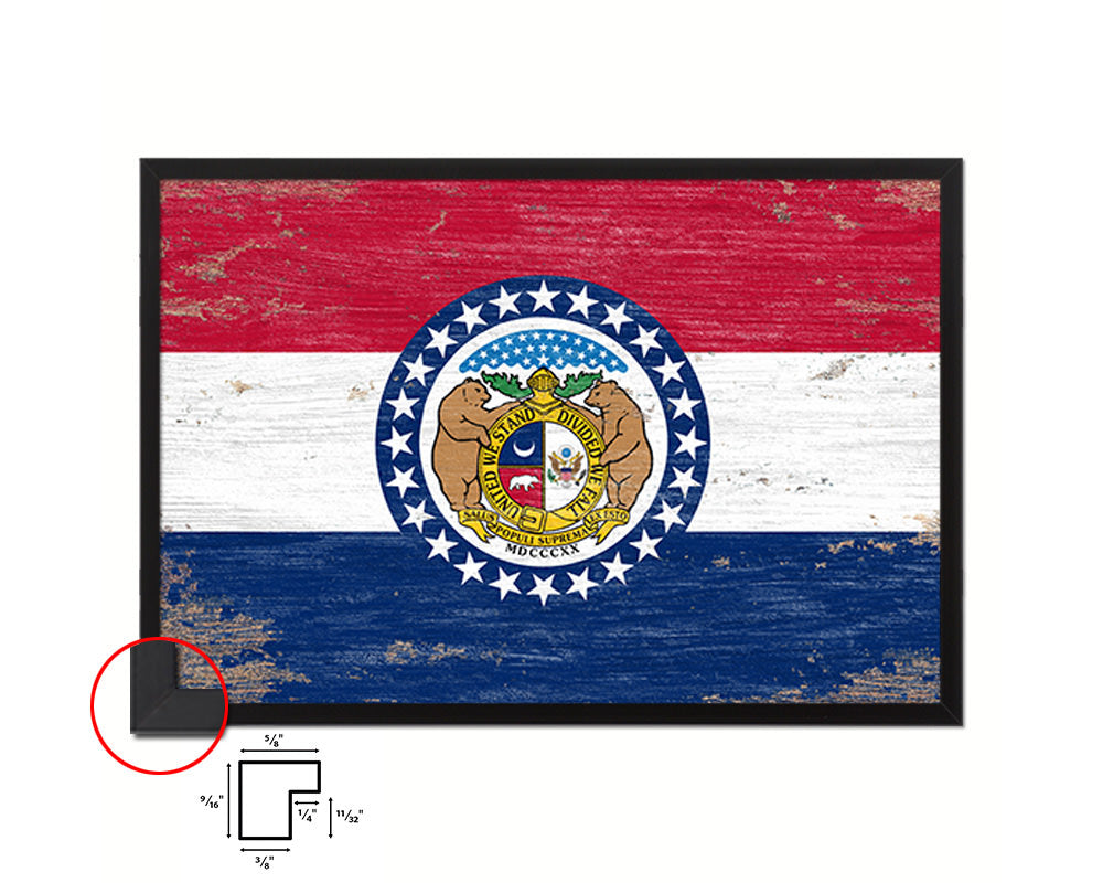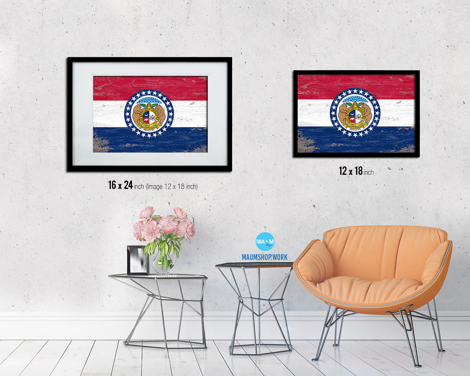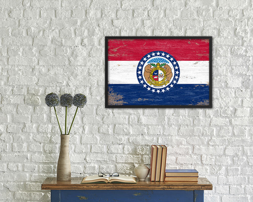 Missouri State Shabby Chic Flag Wood Framed Paper Print Wall Art Decor Gifts