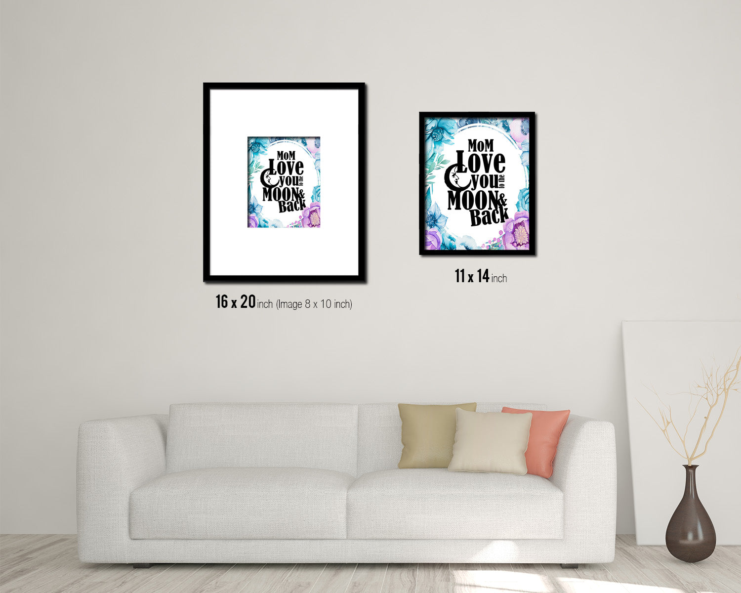 Mom love you to the moon and back Quote Boho Flower Framed Print Wall Decor Art