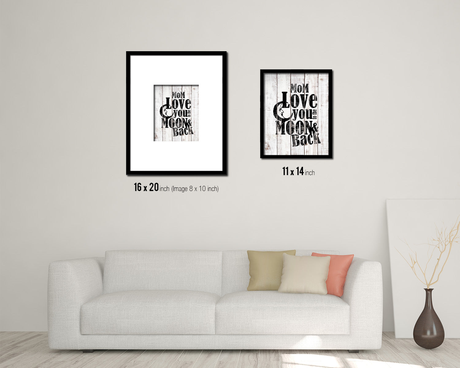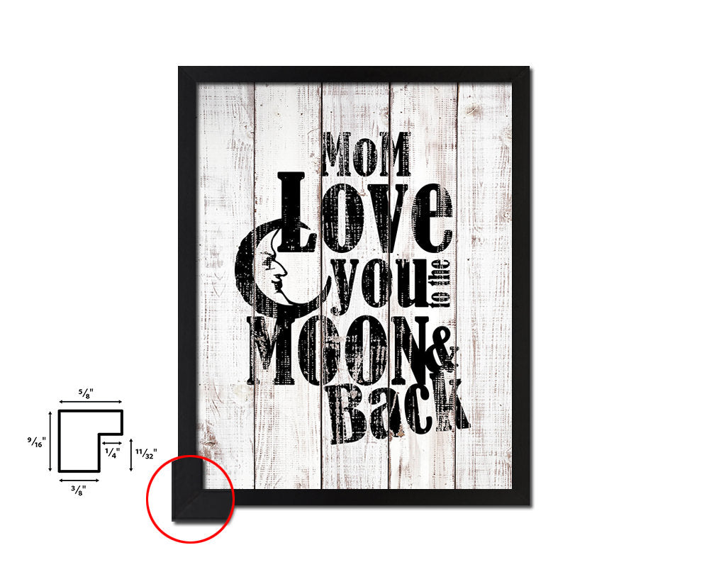 Mom love you to the moon and back White Wash Quote Framed Print Wall Decor Art