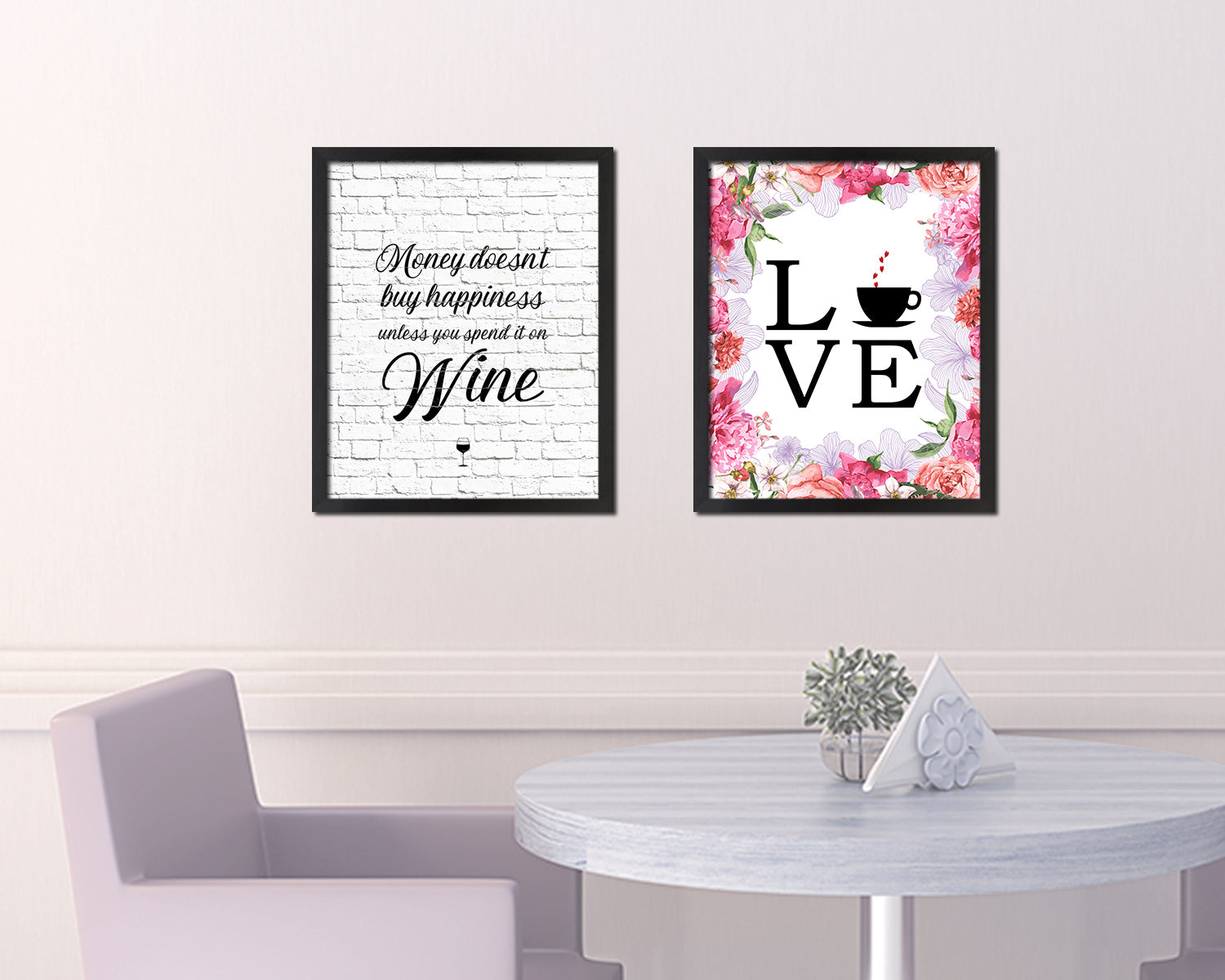 Money doesn't buy happiness unless you spend it Words Wood Framed Print Wall Decor Art Gifts