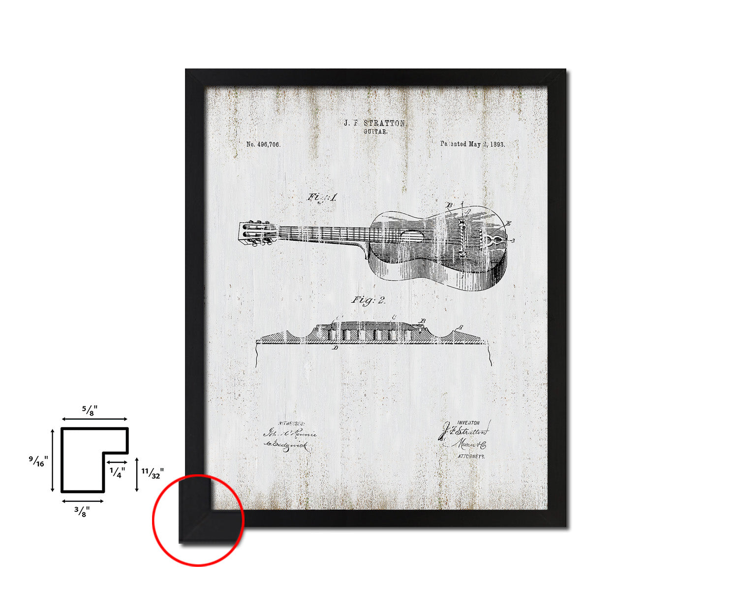 Acoustic Guitar Music Vintage Patent Artwork Black Frame Print Gifts