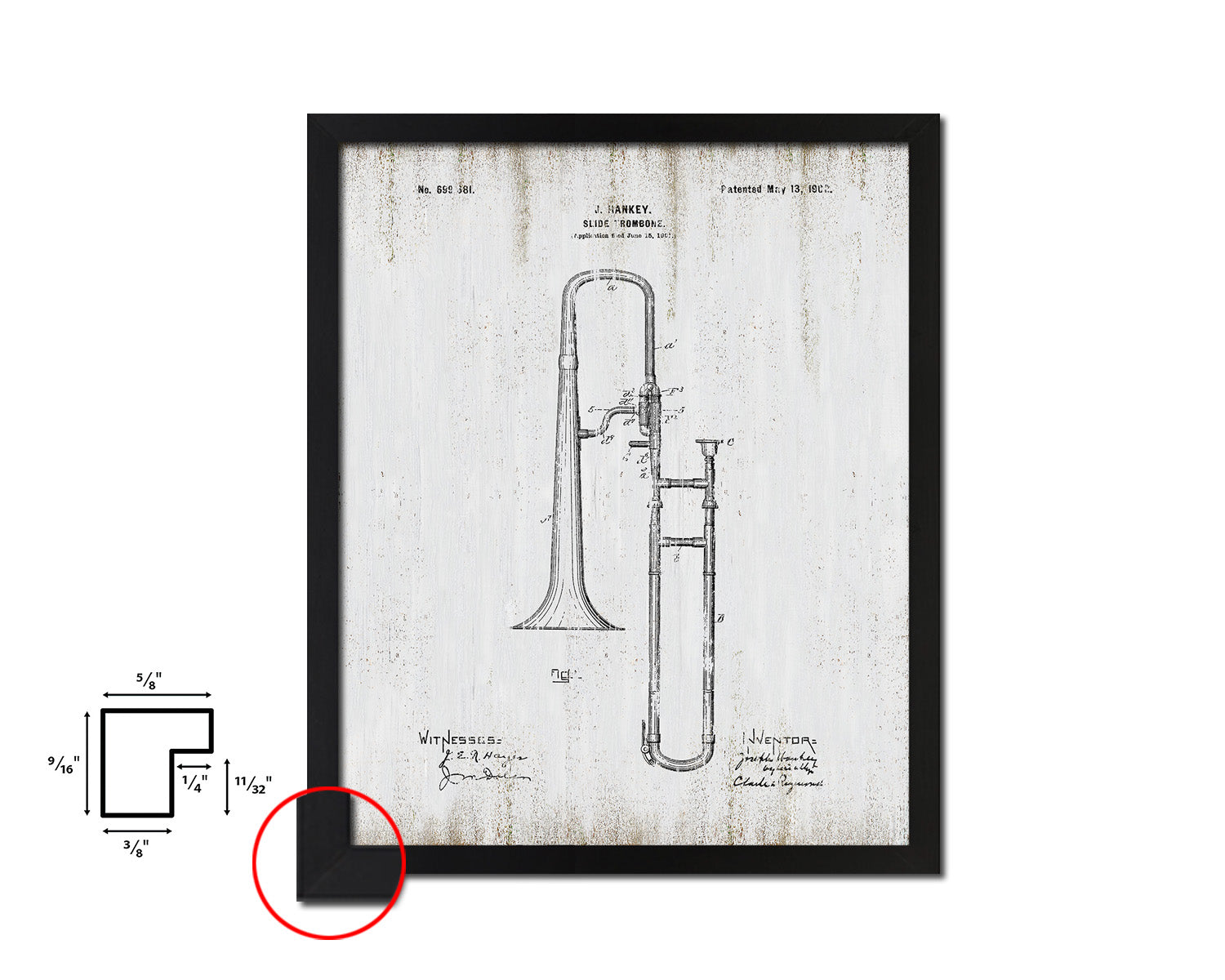 Slide Trombone Music Vintage Patent Artwork Black Frame Print Gifts