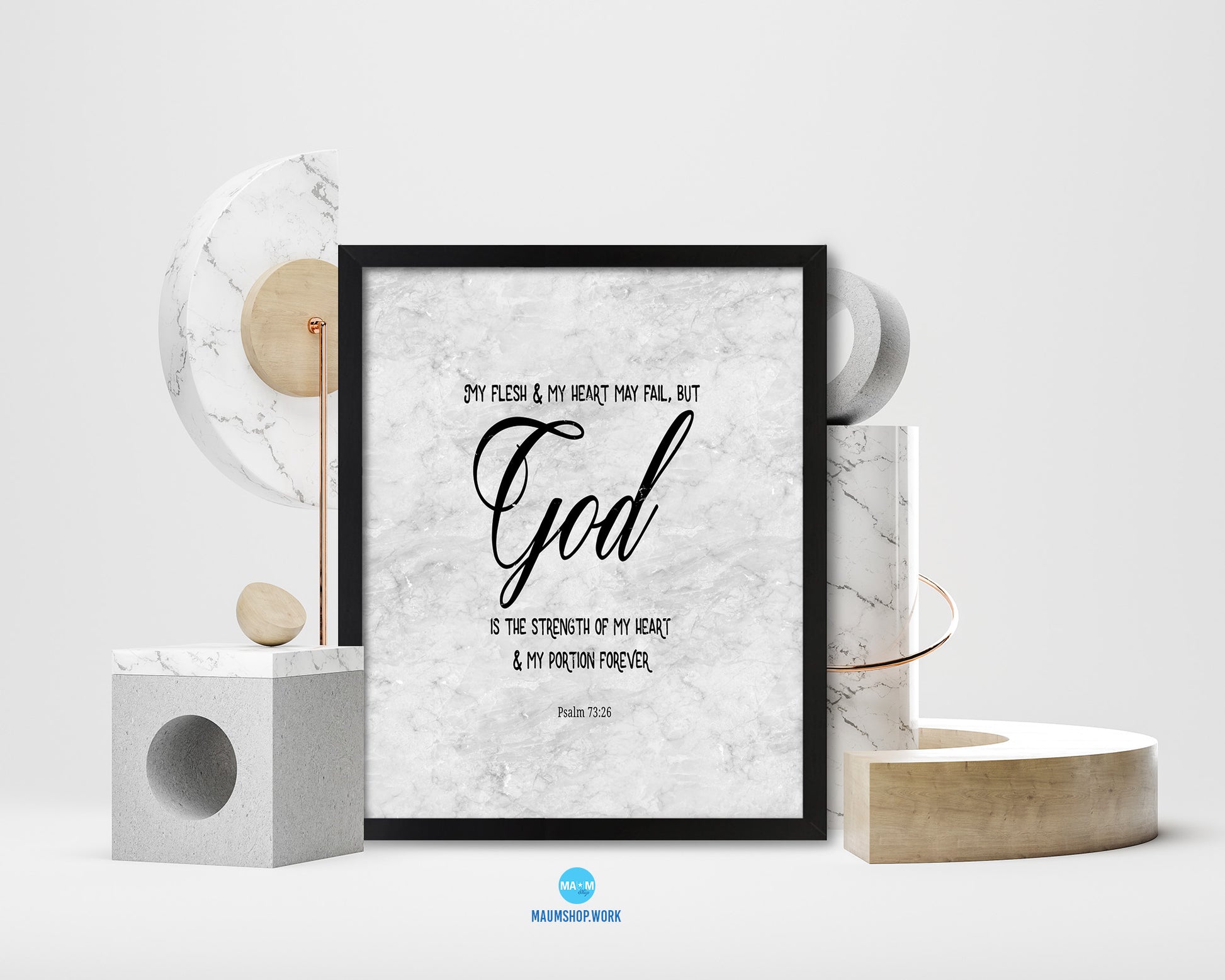 My flesh & my heart may fail, Psalm 73:26 Bible Scripture Verse Framed Print Wall Art Decor Gifts