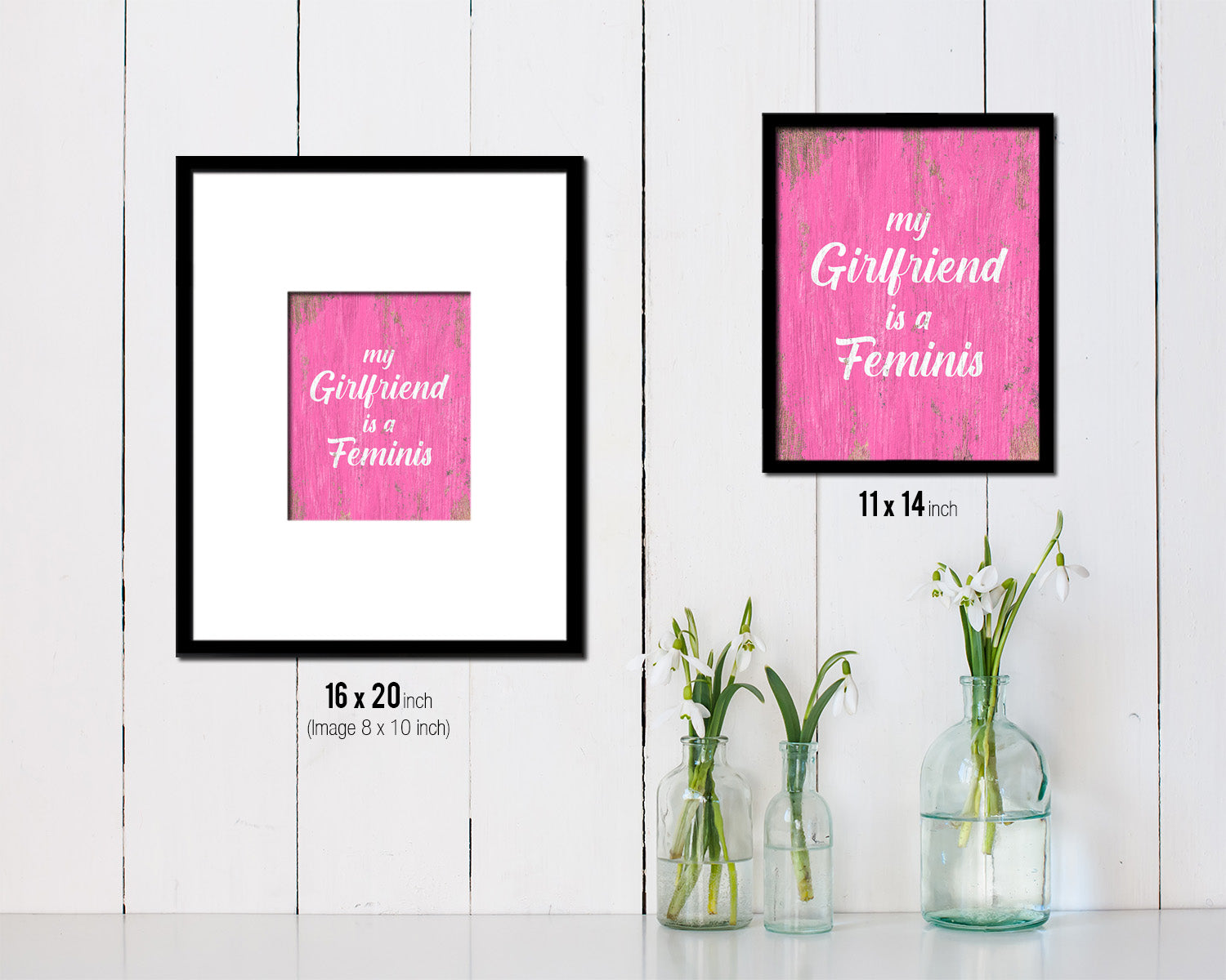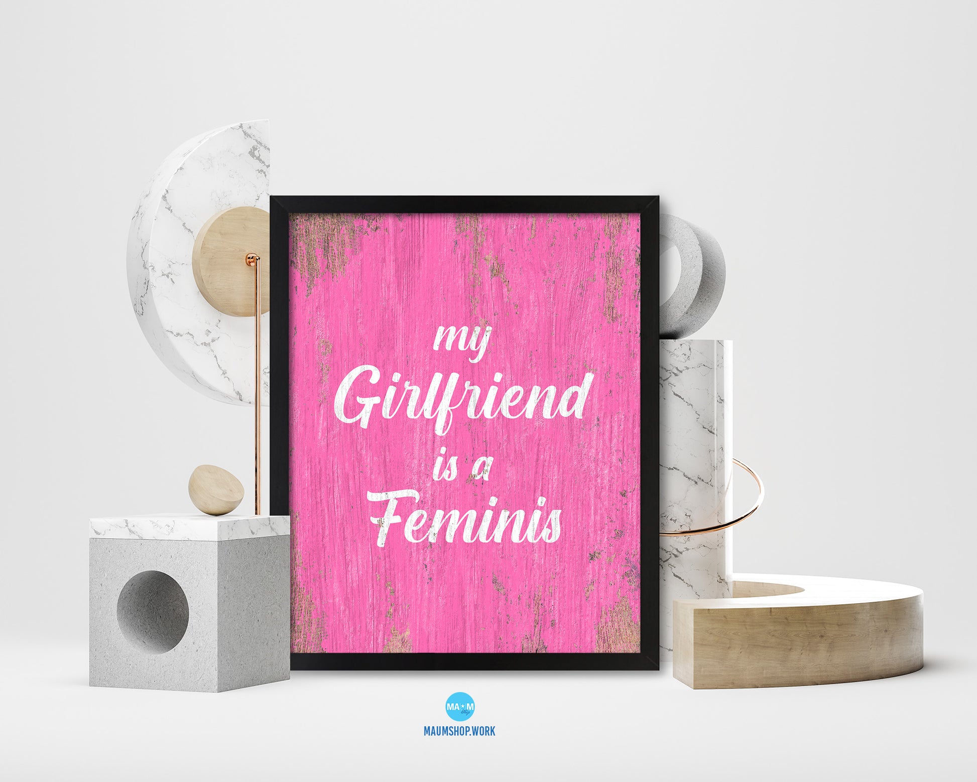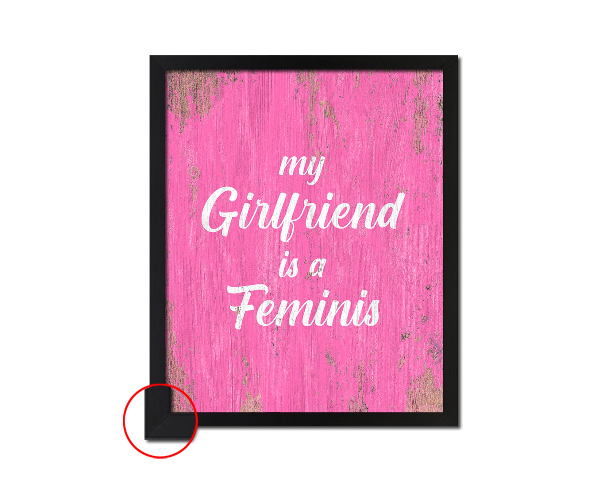 My girlfriend is a fiminist Rainbow Pride Peace Right Justice Poster Wood Framed Wall Decor Print Gifts
