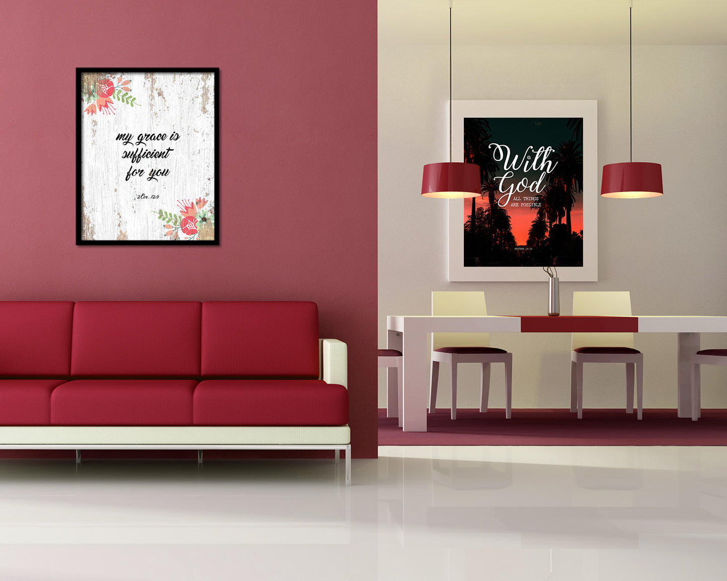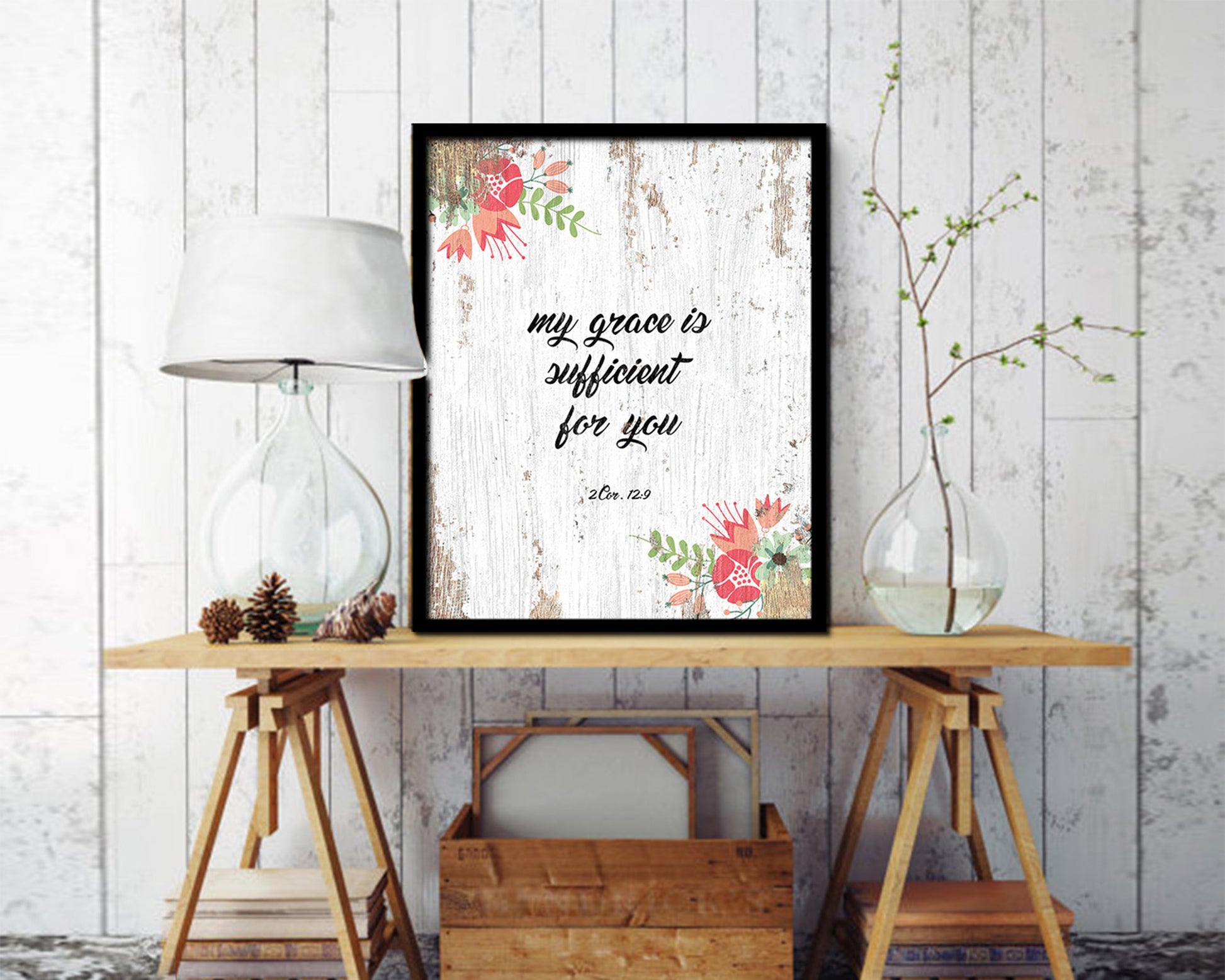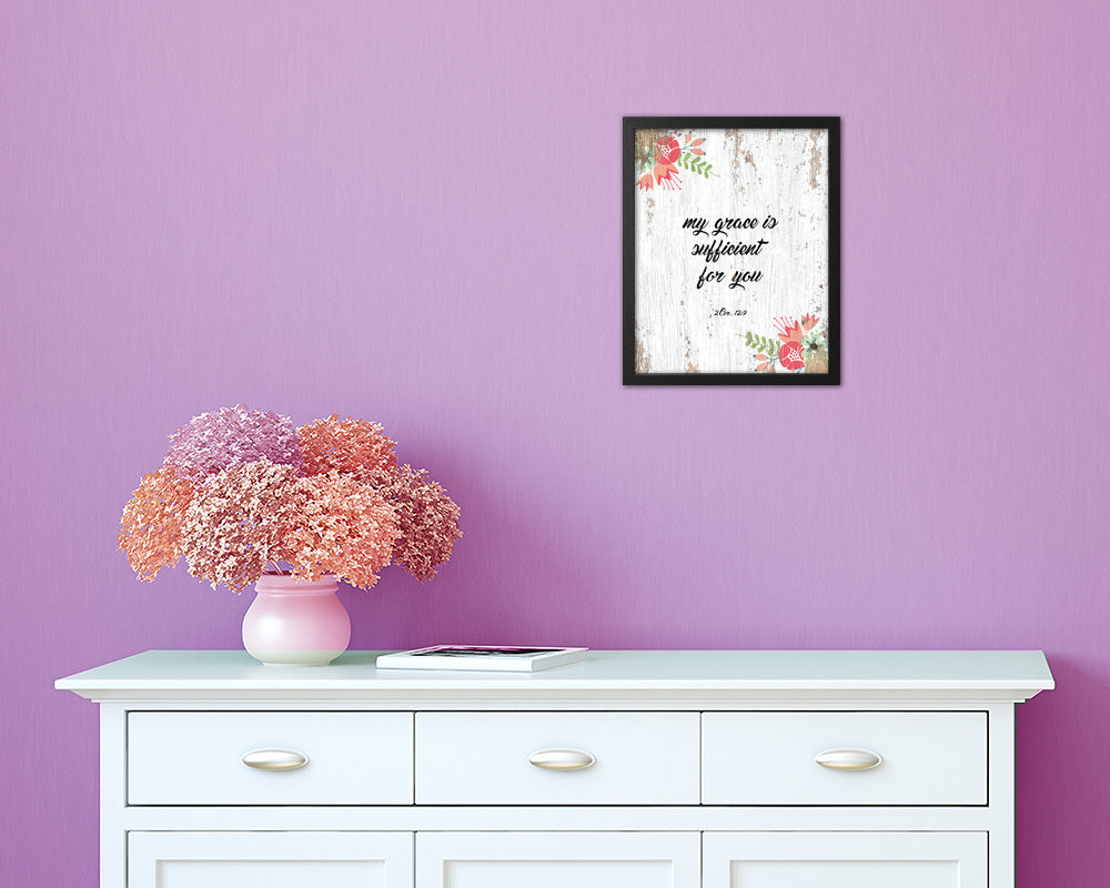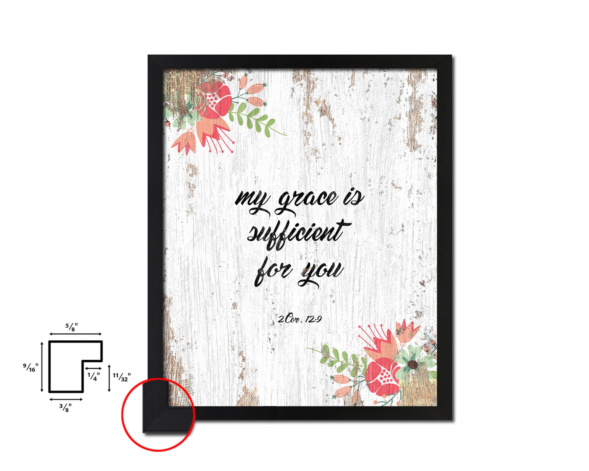 My grace is sufficient for you, 2 Corinthians 12:9 Quote Framed Print Home Decor Wall Art Gifts