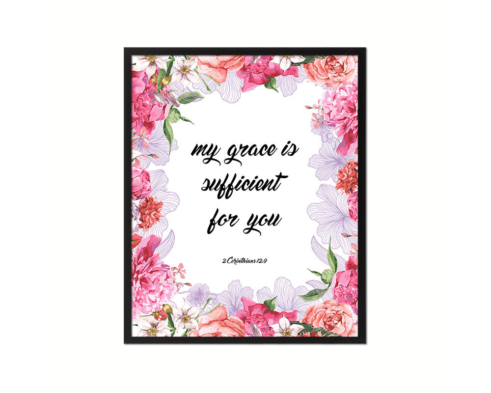 My grace is sufficient for you, 2 Corinthians 12:9 Quote Framed Print Home Decor Wall Art Gifts