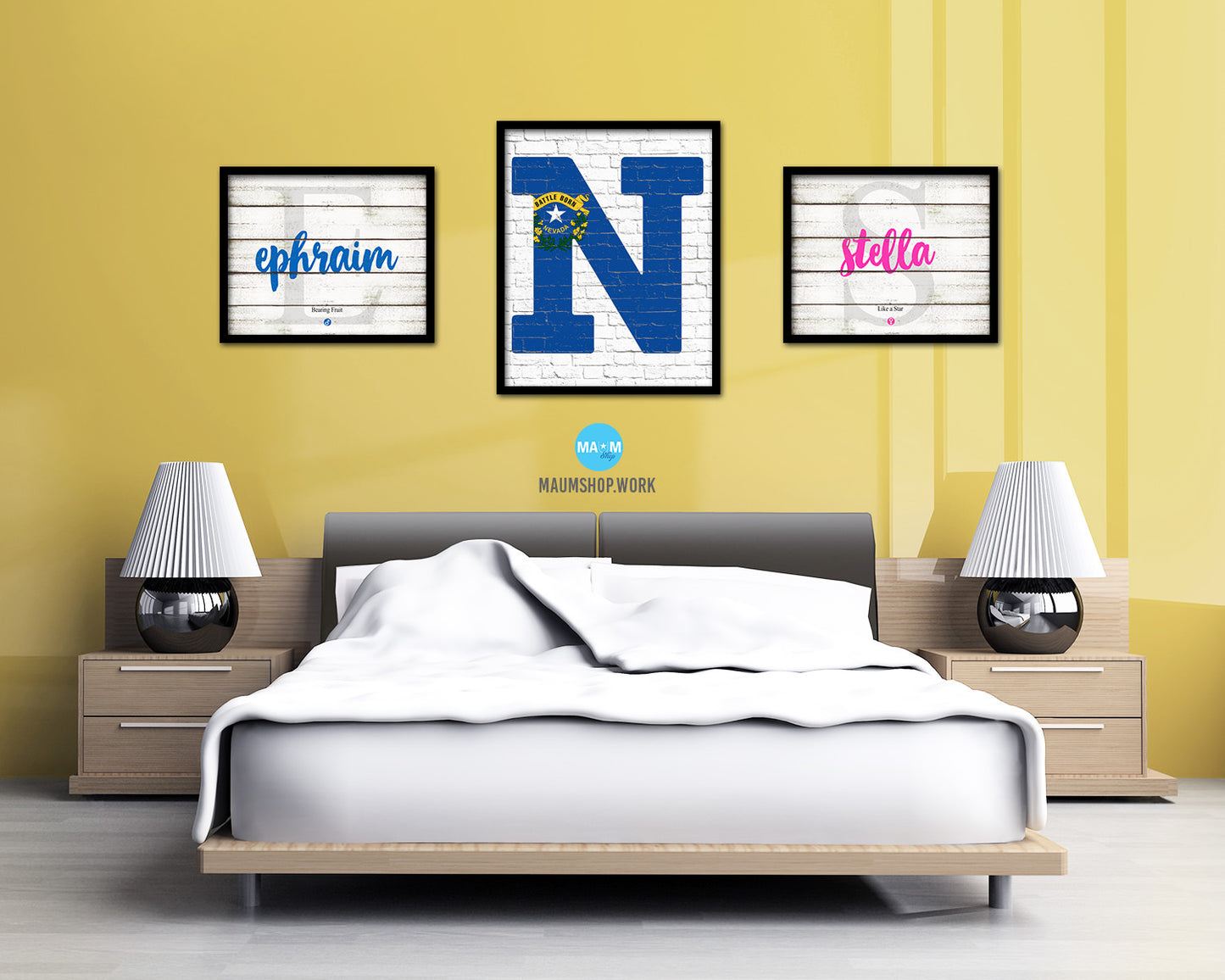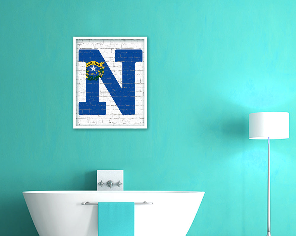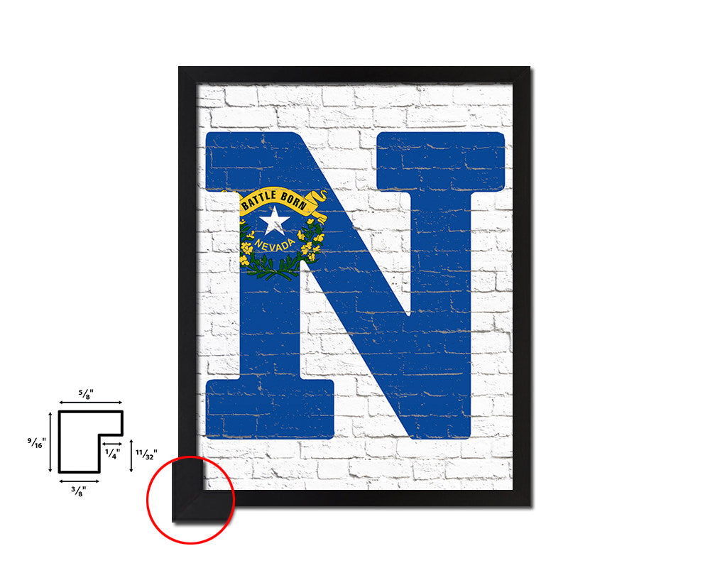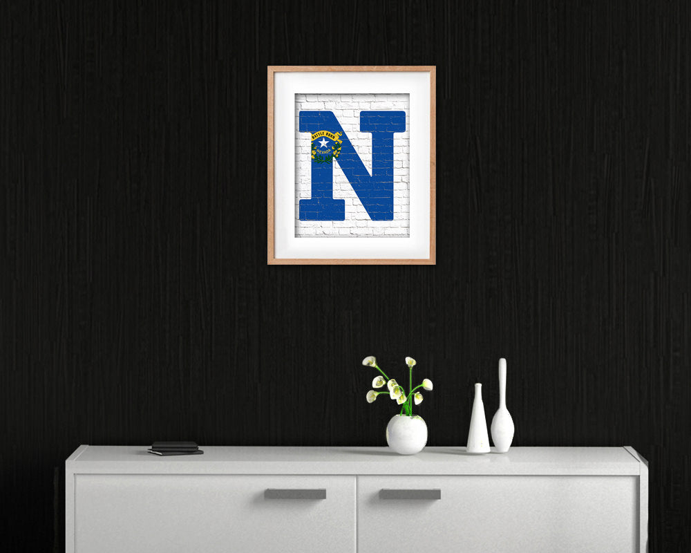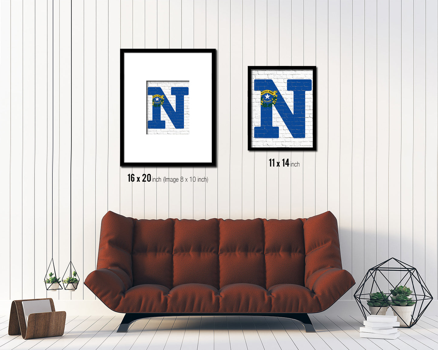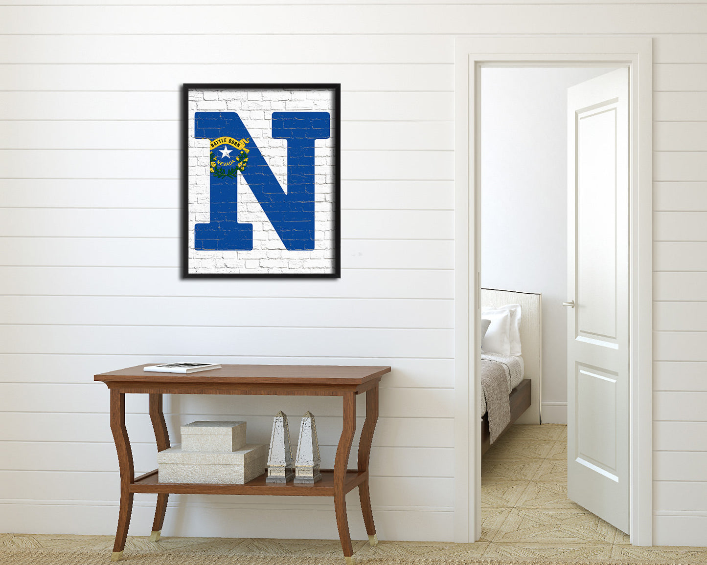 Nevada State Initial Flag Wood Framed Paper Print Decor Wall Art Gifts, Brick
