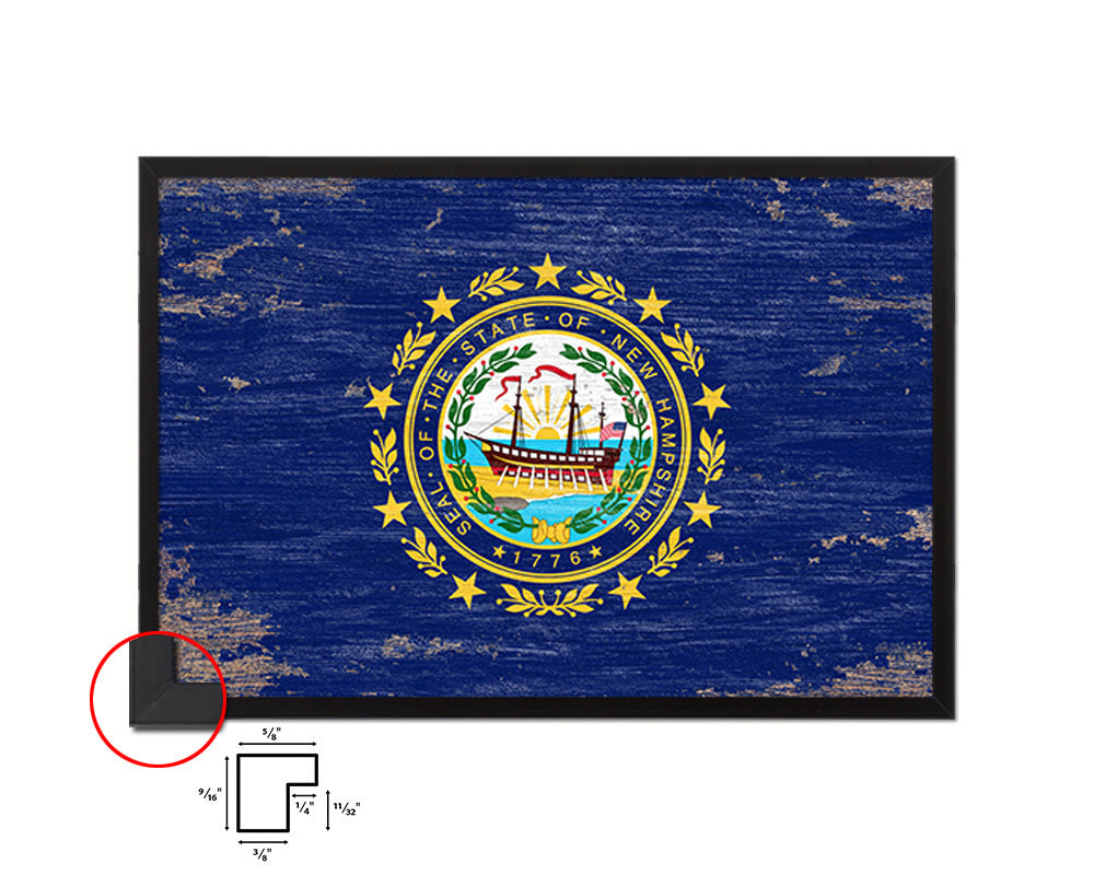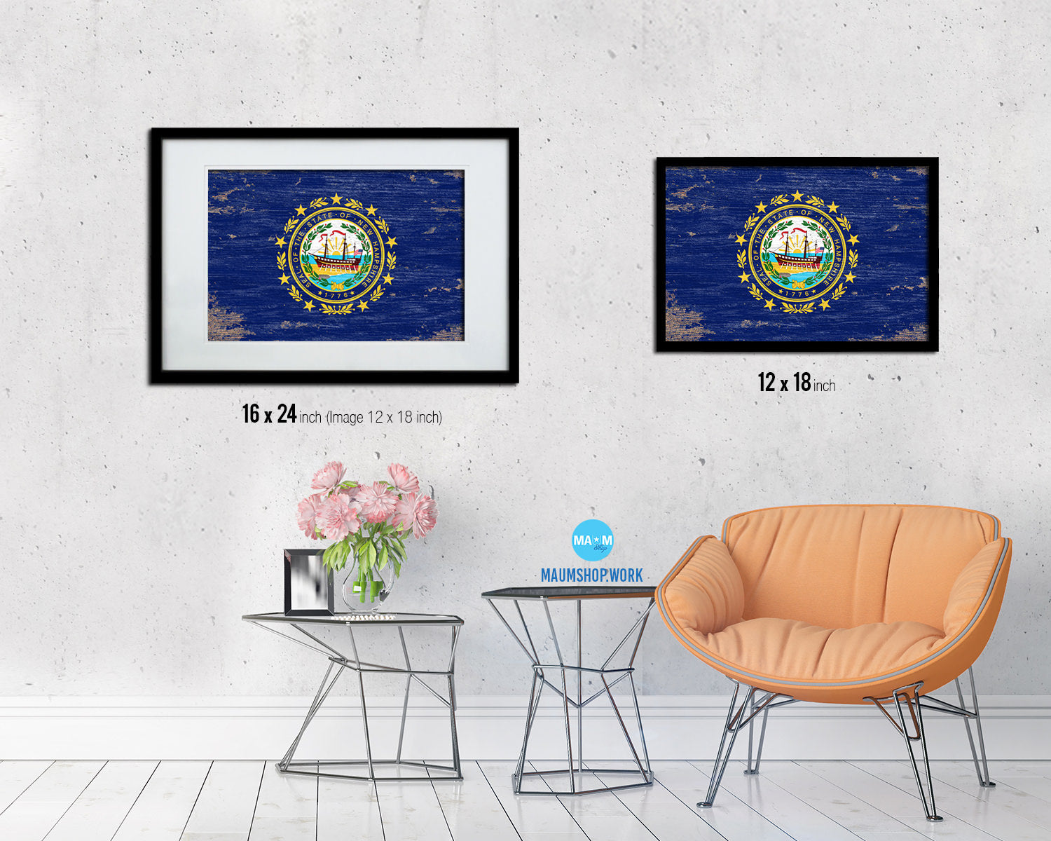 New Hampshire State Shabby Chic Flag Wood Framed Paper Print Wall Art Decor Gifts