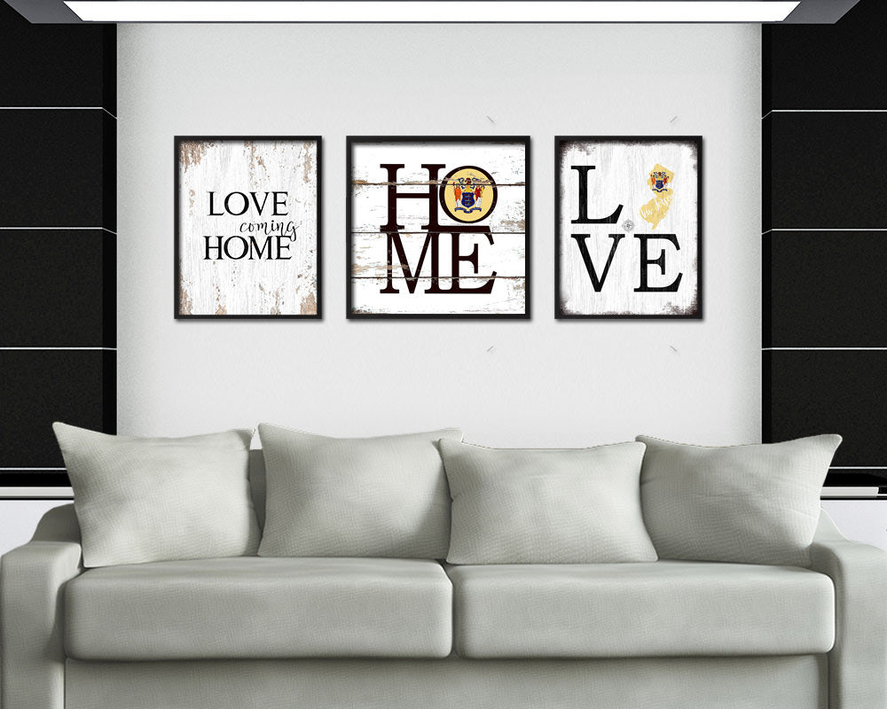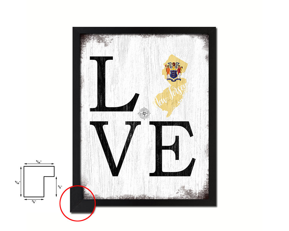 New Jersey Shabby Chic Love Sign Wood Framed Paper Print Decor Wall Art Gifts