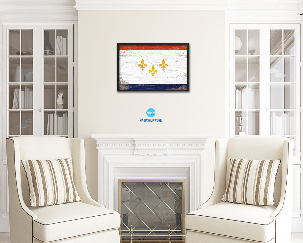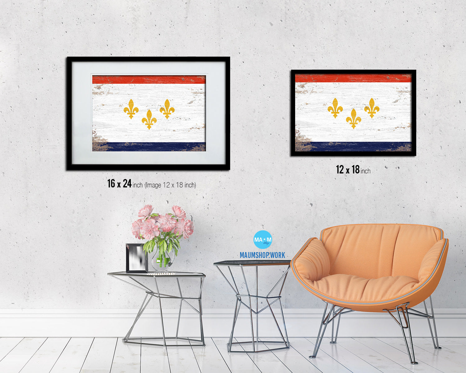 New Orleans City Louisiana State Shabby Chic Flag Framed Prints Decor Wall Art Gifts
