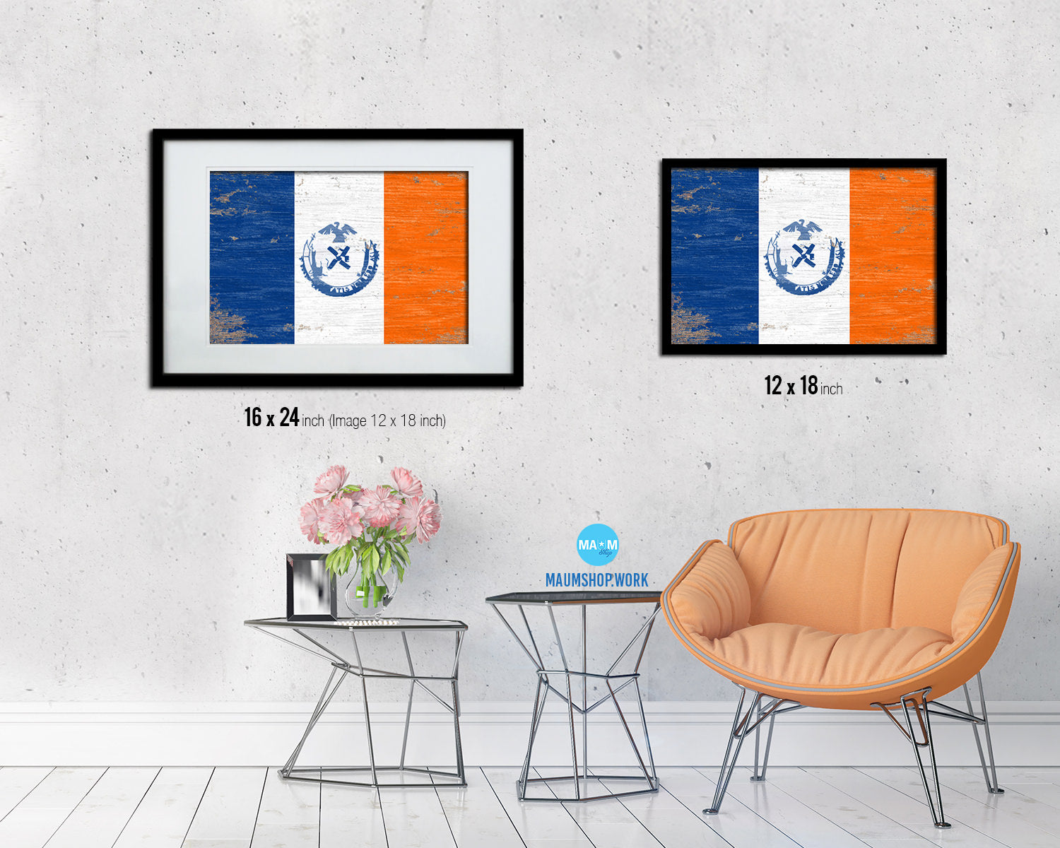 New York City New York State Shabby Chic Flag Framed Prints Decor Wall Art Gifts