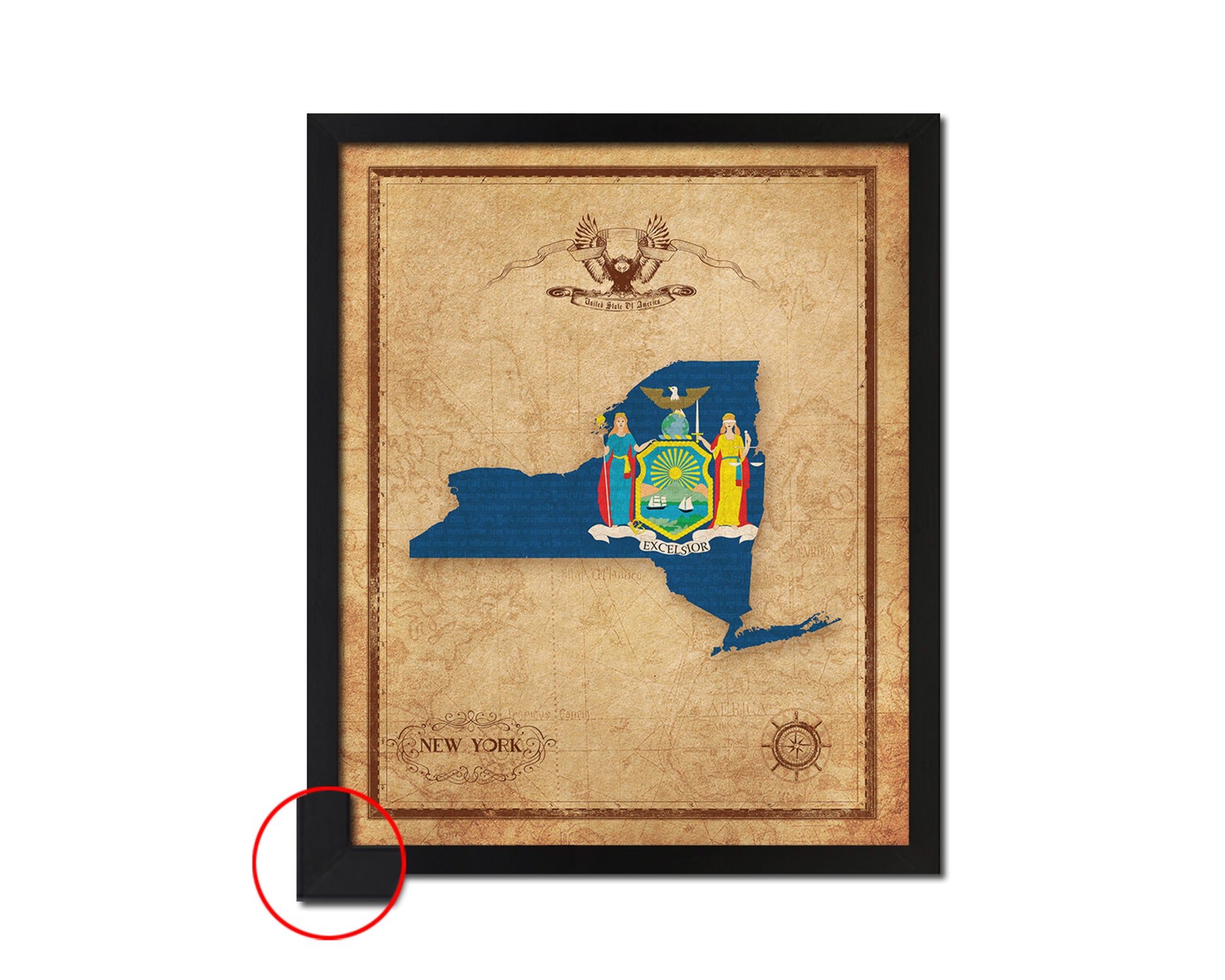 New York State Vintage Map Wood Framed Paper Print Wall Art Decor Gifts