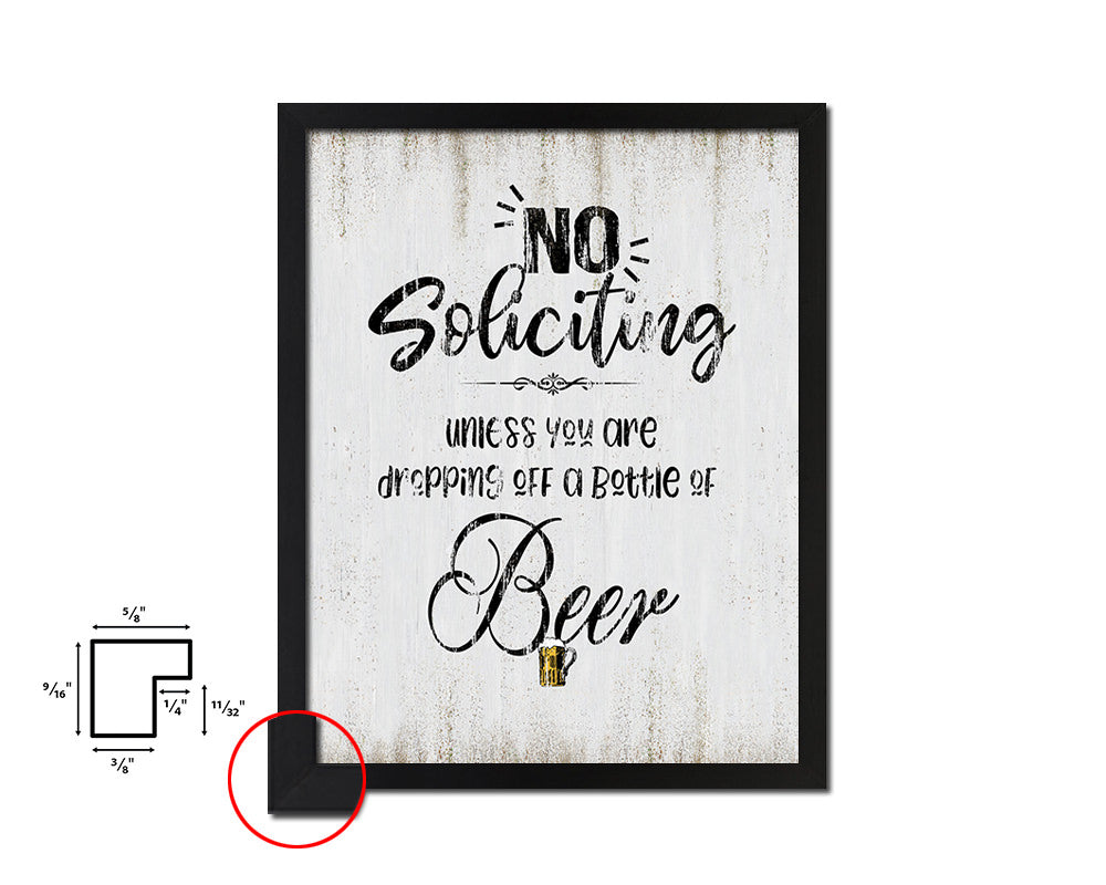 No soliciting unless you are dropping off a bottle of beer Quote Wood Framed Print Wall Decor Art