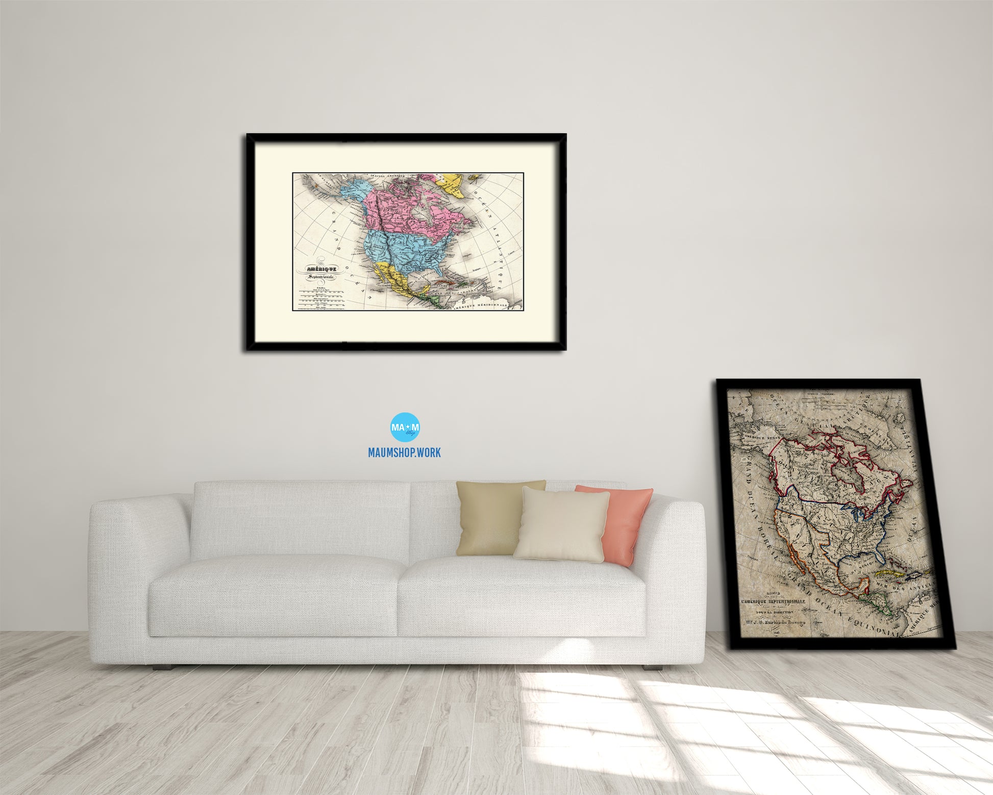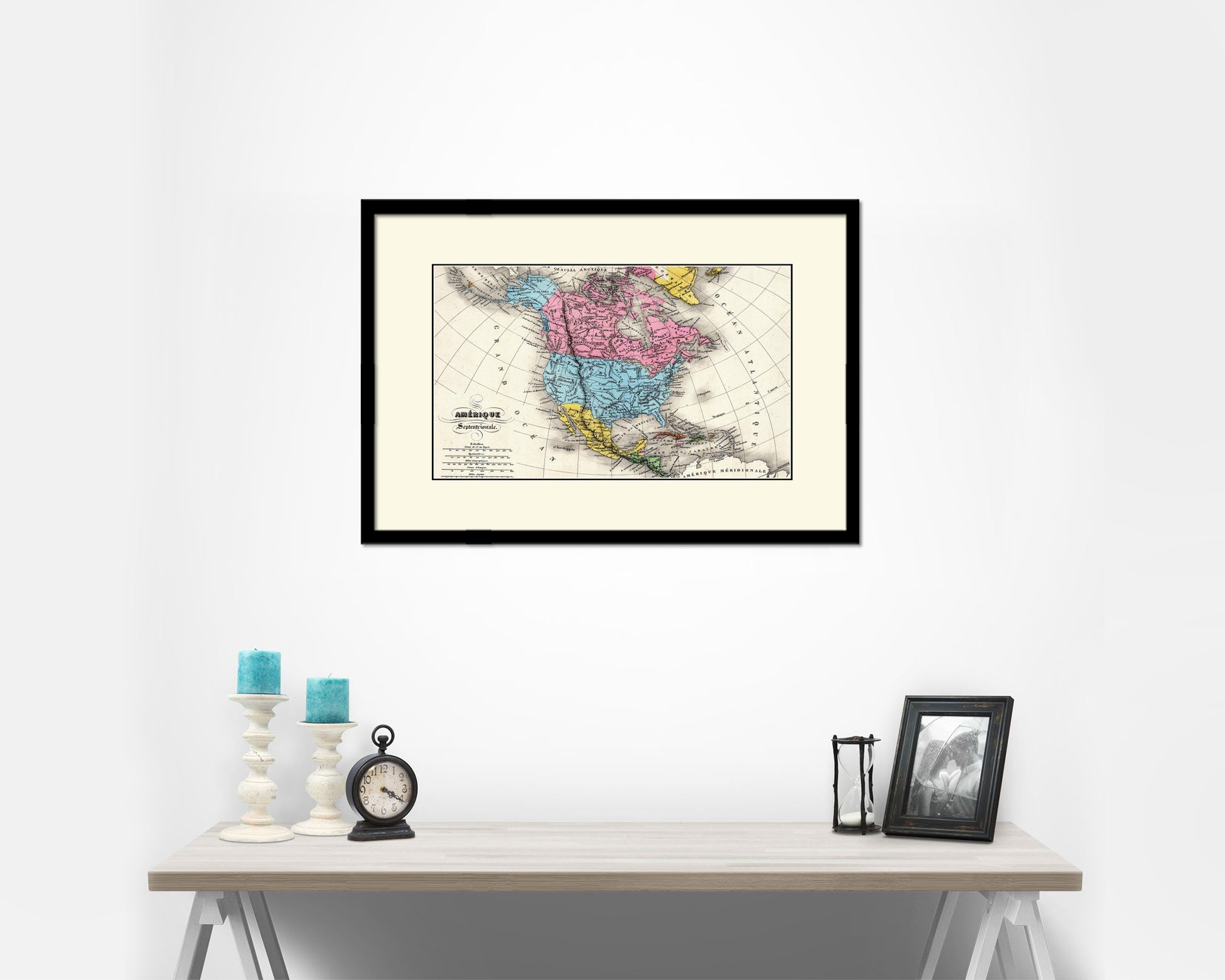 North America United States Canada Mexico Old Map Framed Print Art Wall Decor Gifts