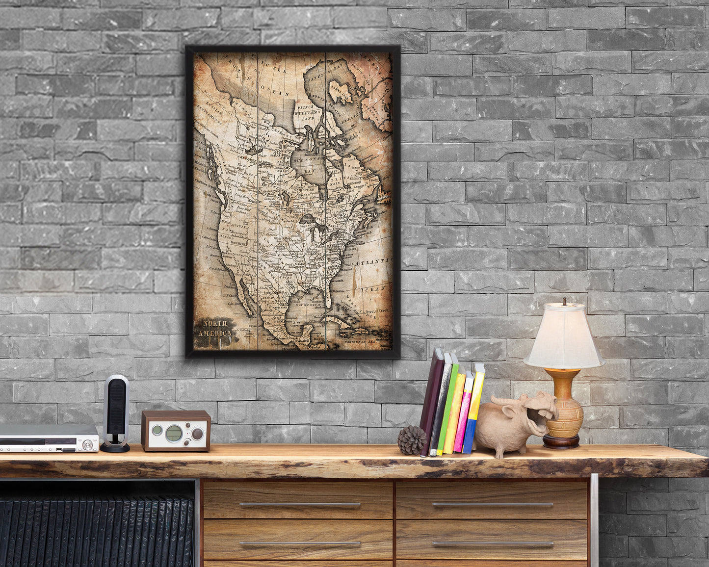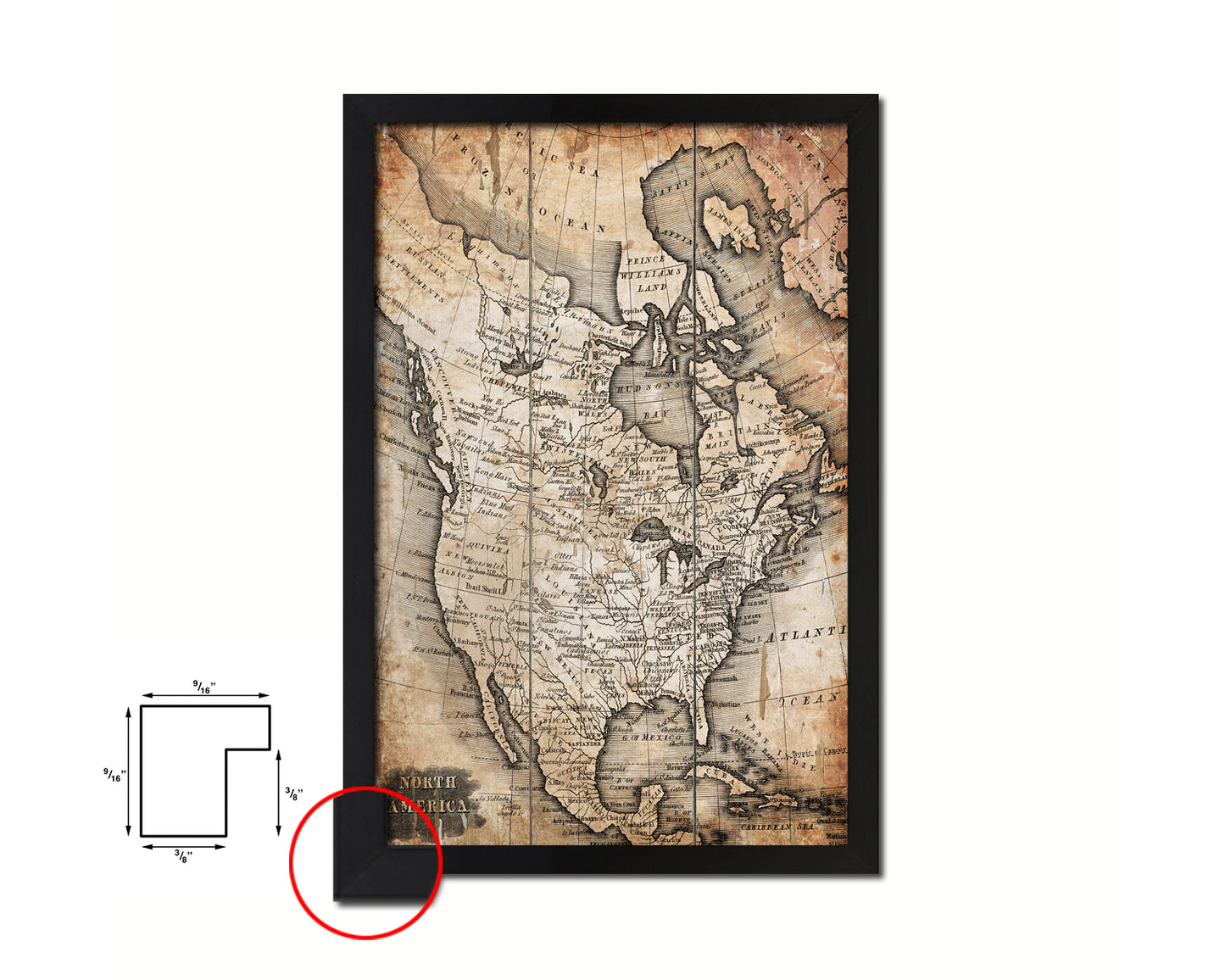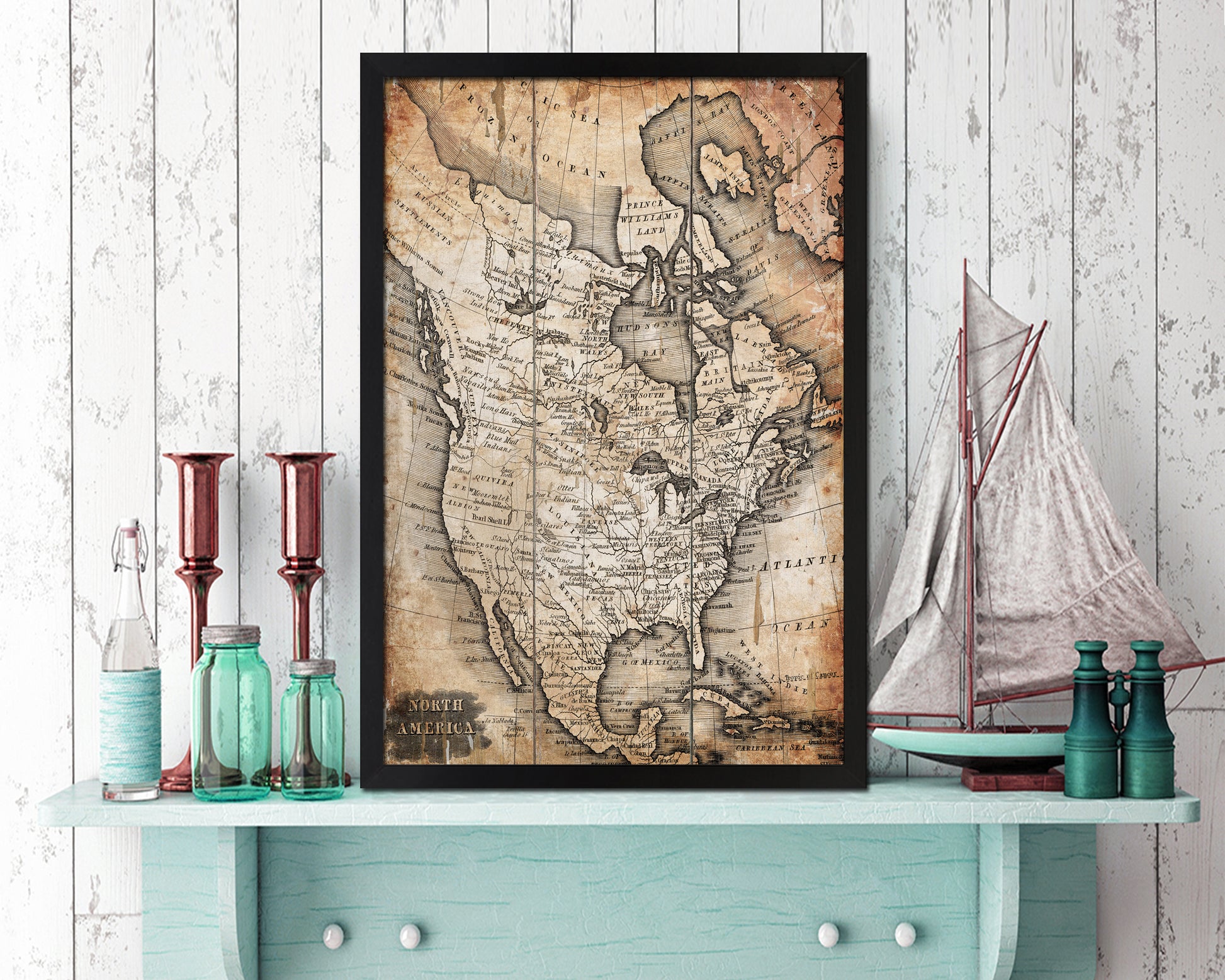 North America Antique Map Wood Framed Print Art Wall Decor Gifts