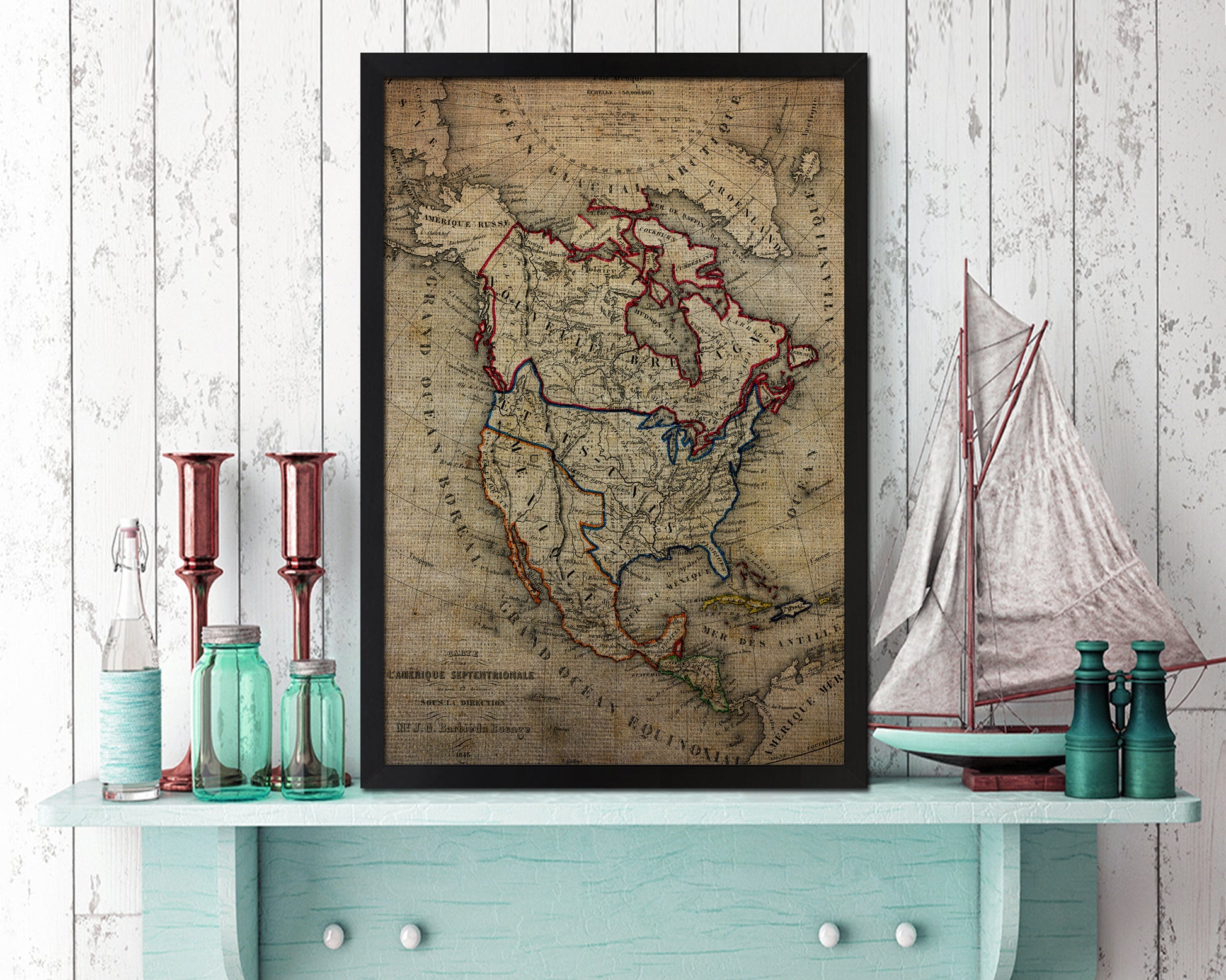 North America Vintage Map Wood Framed Print Art Wall Decor Gifts