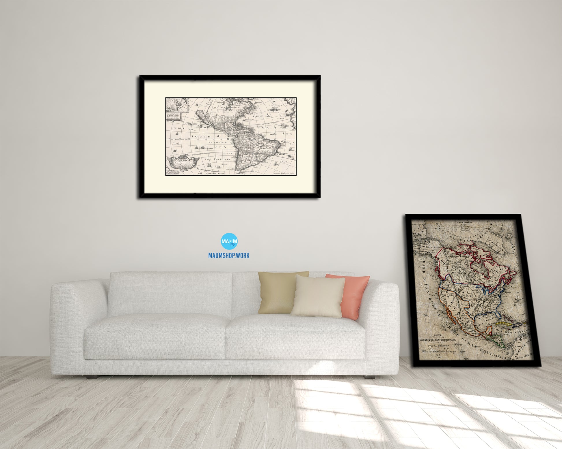 North and South America 1626 Old Map Framed Print Art Wall Decor Gifts