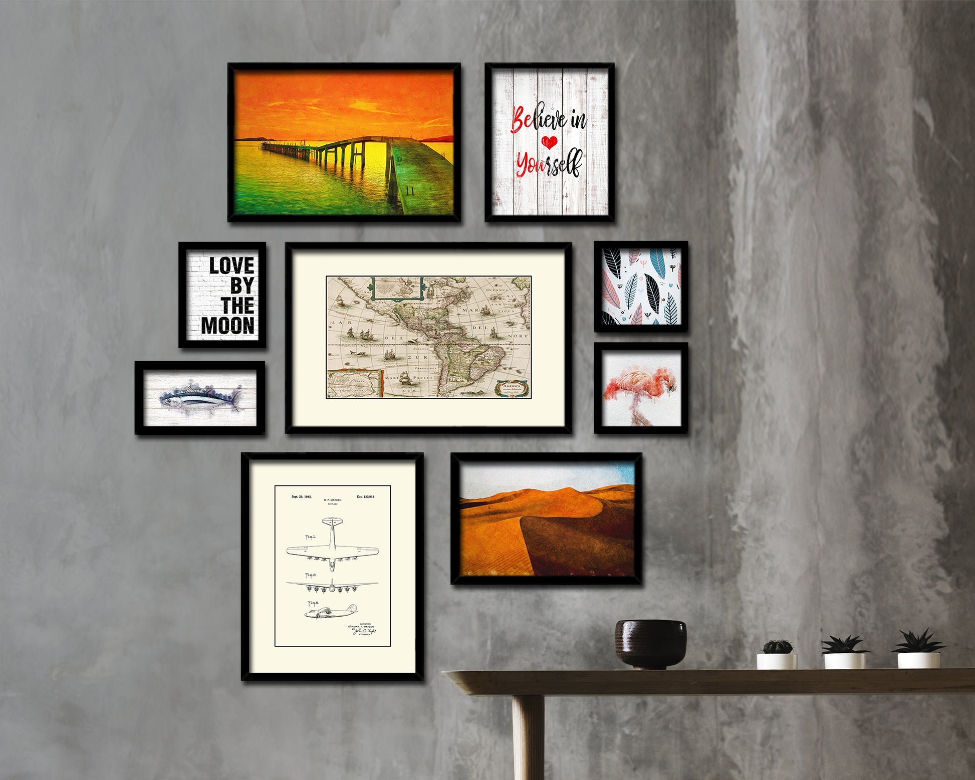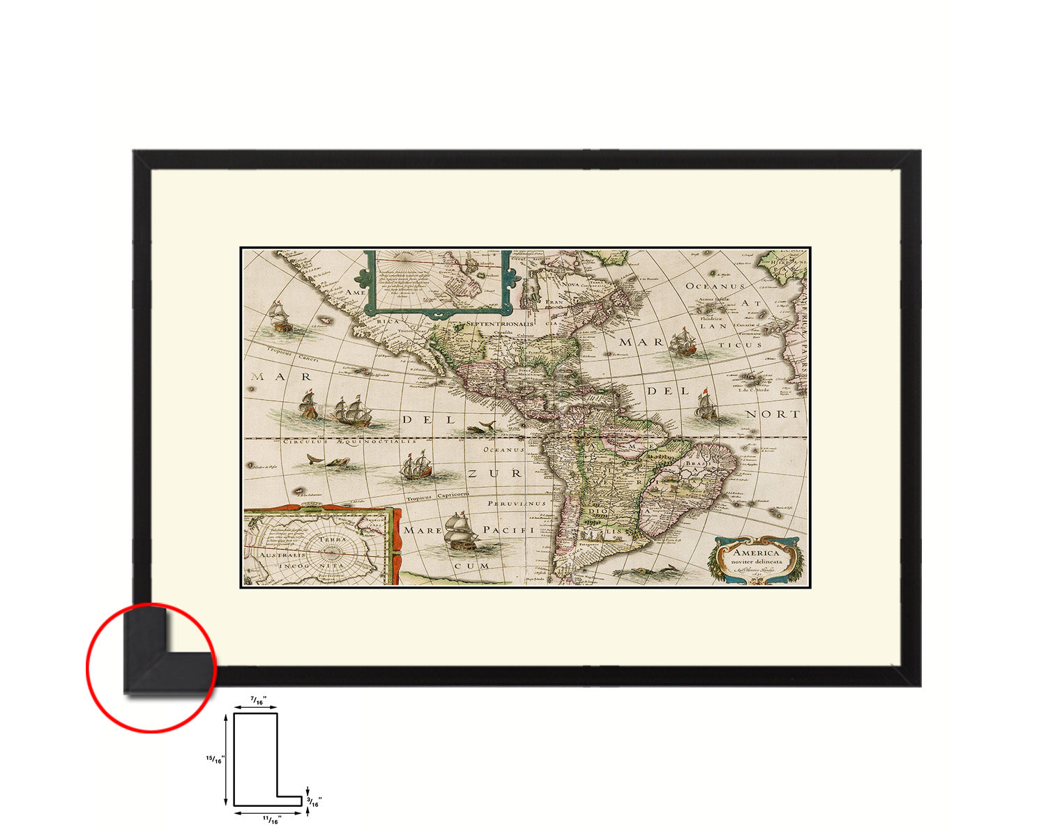 North and South America Cartographic Old Map Framed Print Art Wall Decor Gifts