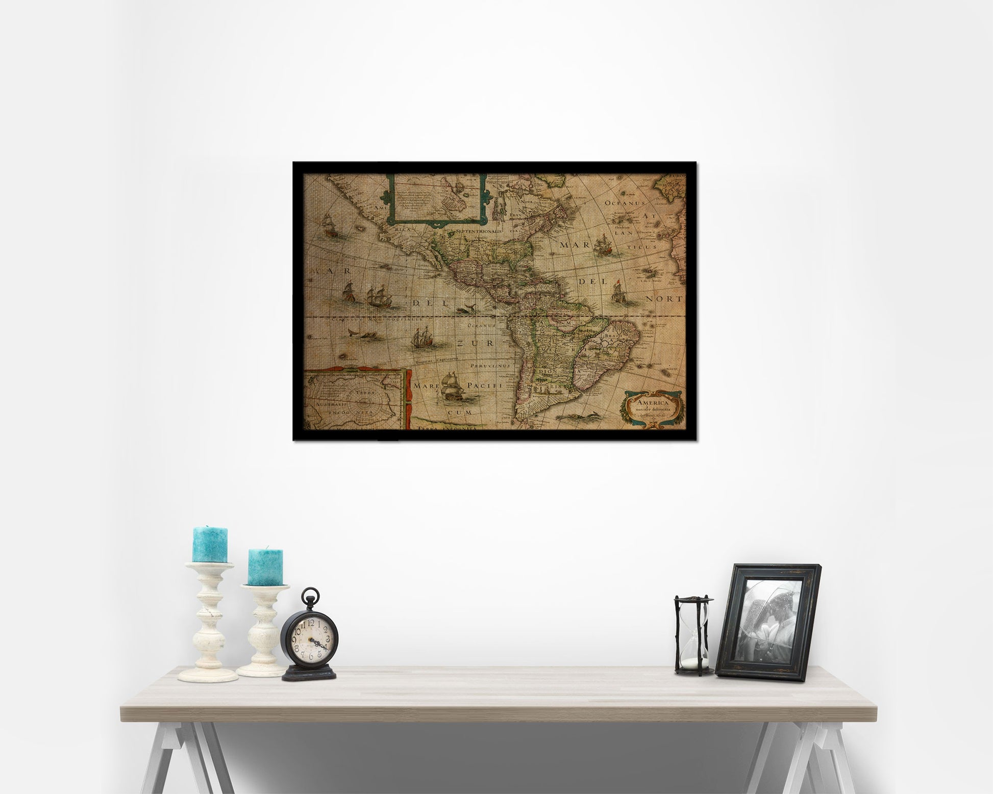 North and South America Cartographic Vintage Map Framed Print Art Wall Decor Gifts