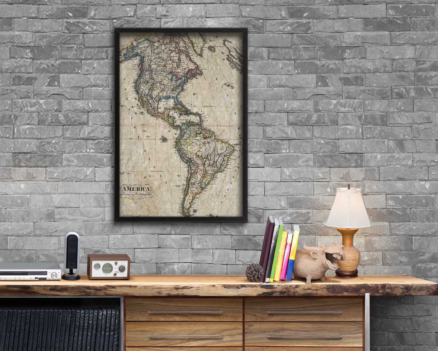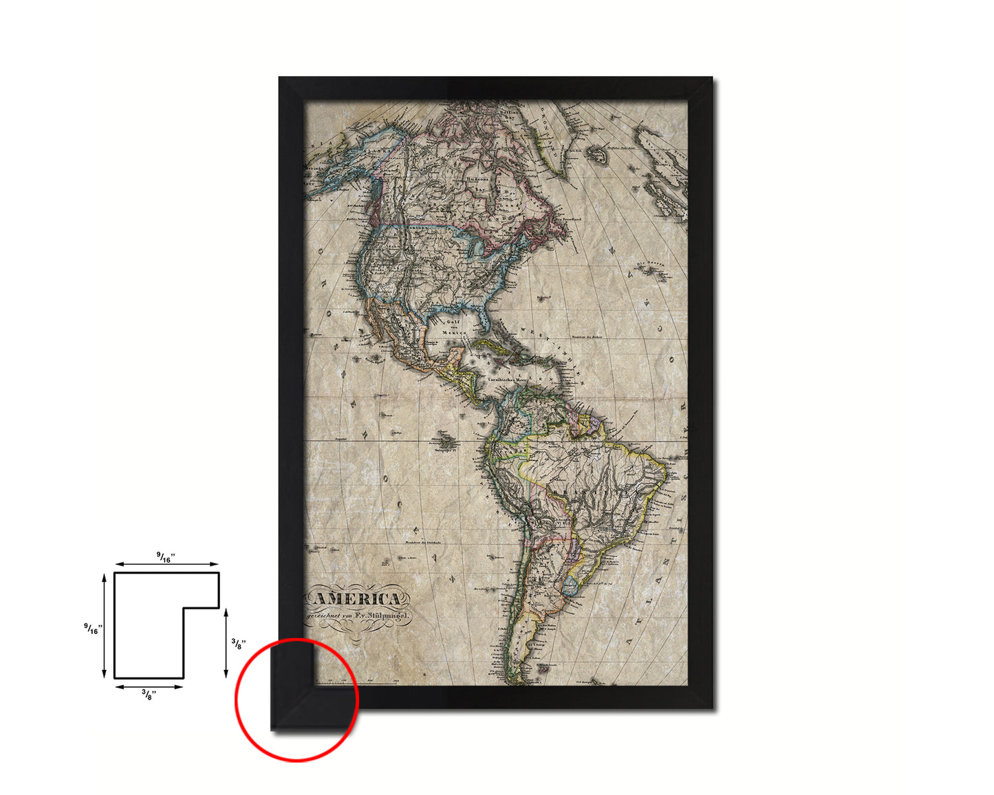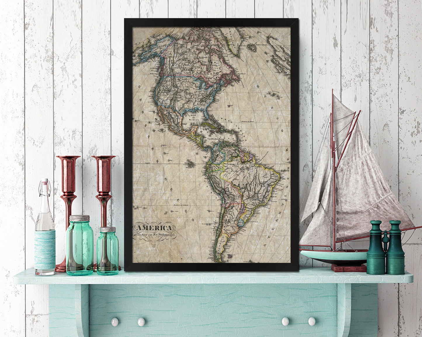 North and South America Historical Map Wood Framed Print Art Wall Decor Gifts