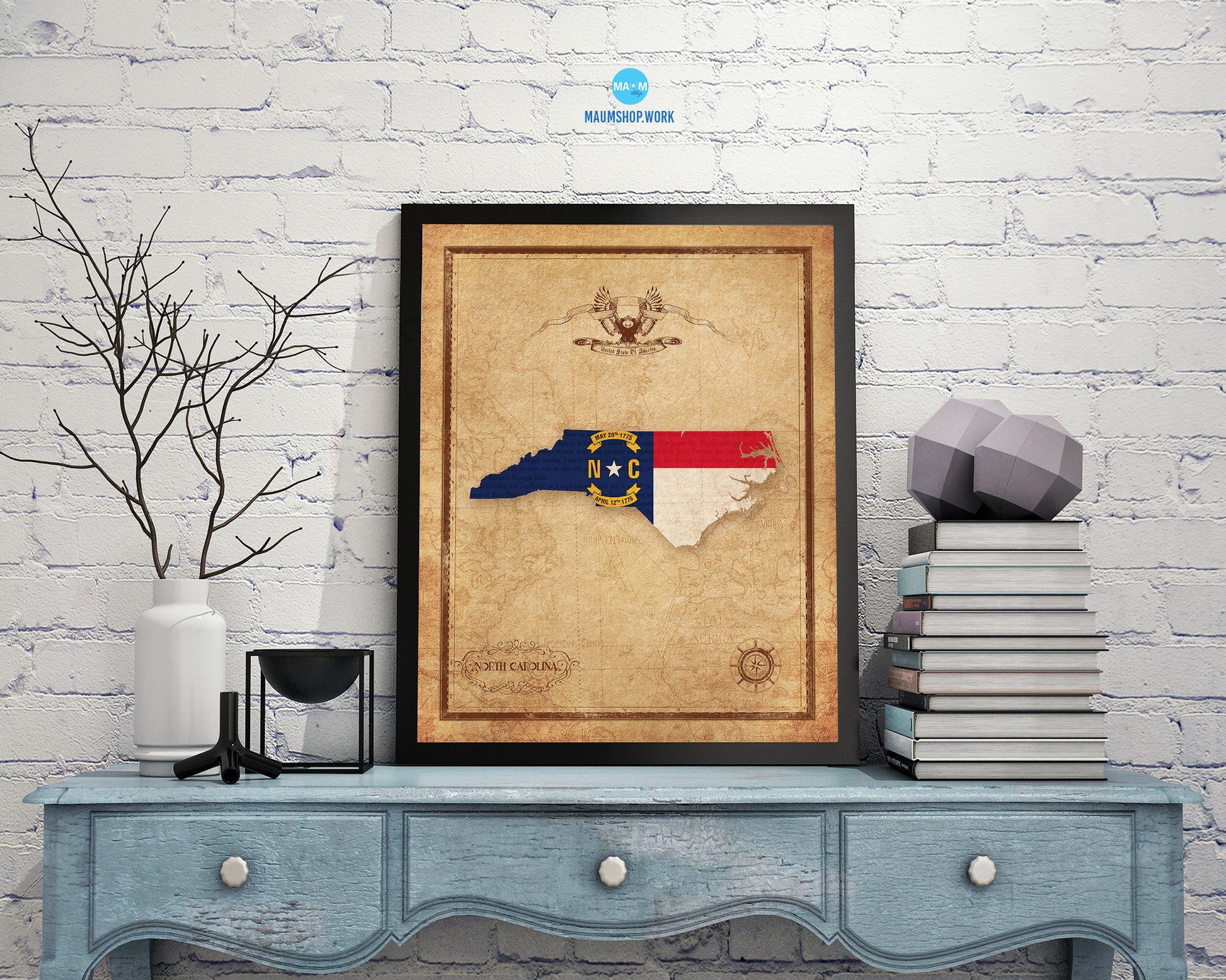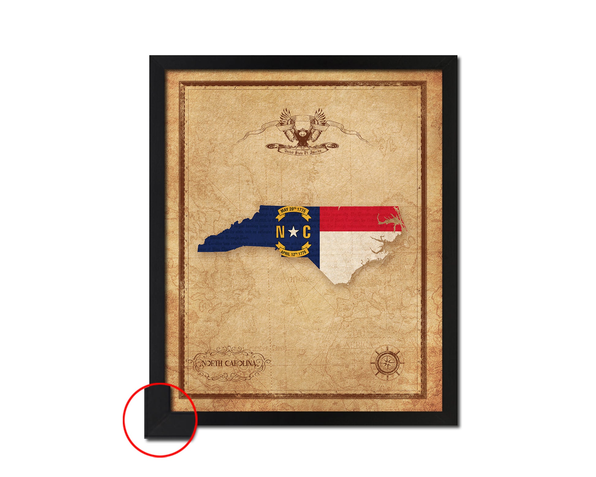North Carolina State Vintage Map Wood Framed Paper Print Wall Art Decor Gifts