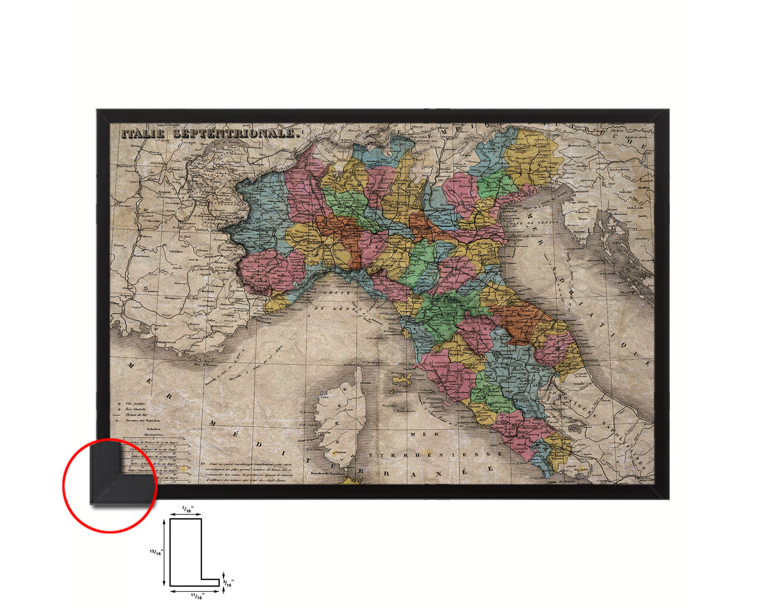 North Iitaly Historical Map Framed Print Art Wall Decor Gifts