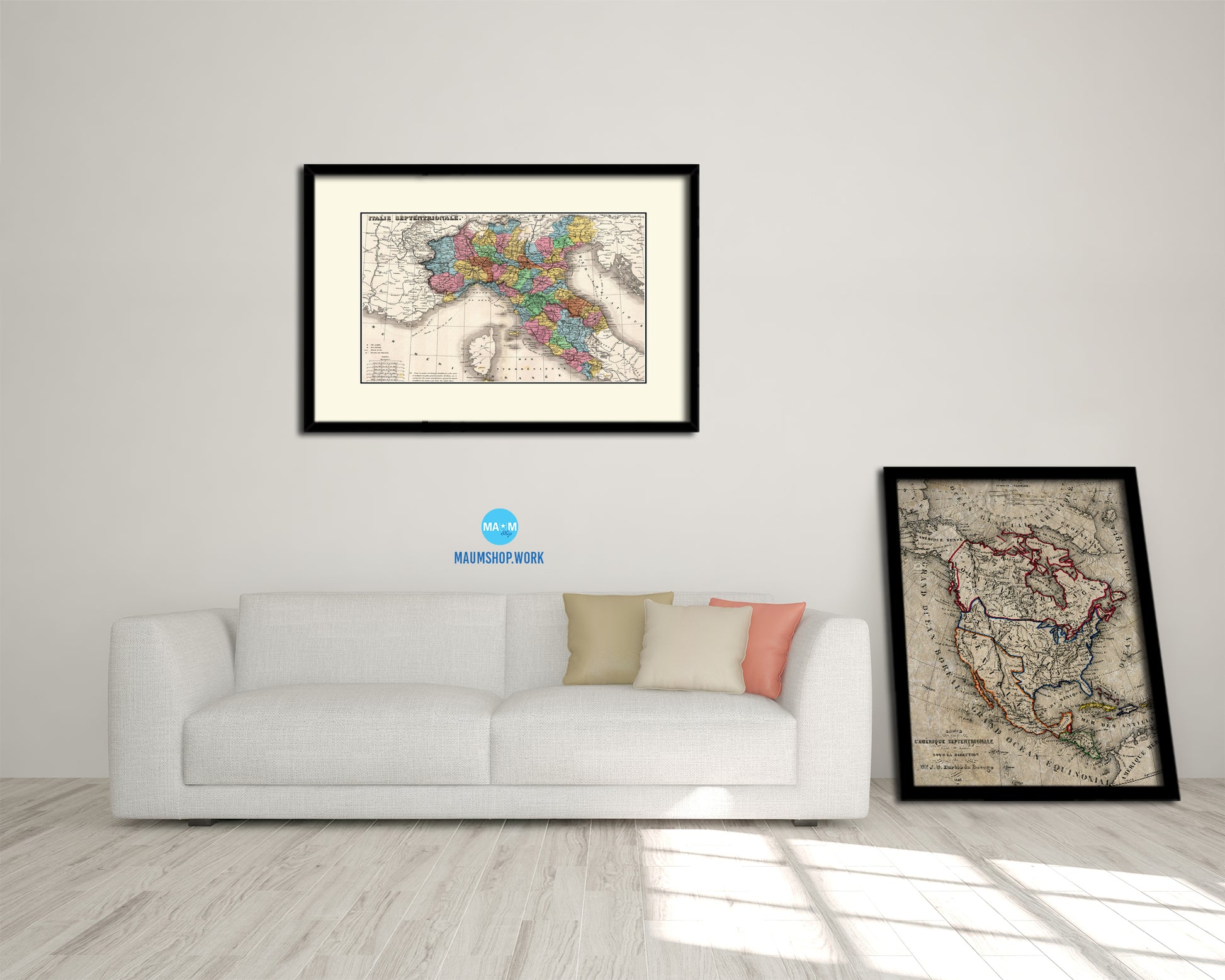 North Iitaly Old Map Framed Print Art Wall Decor Gifts
