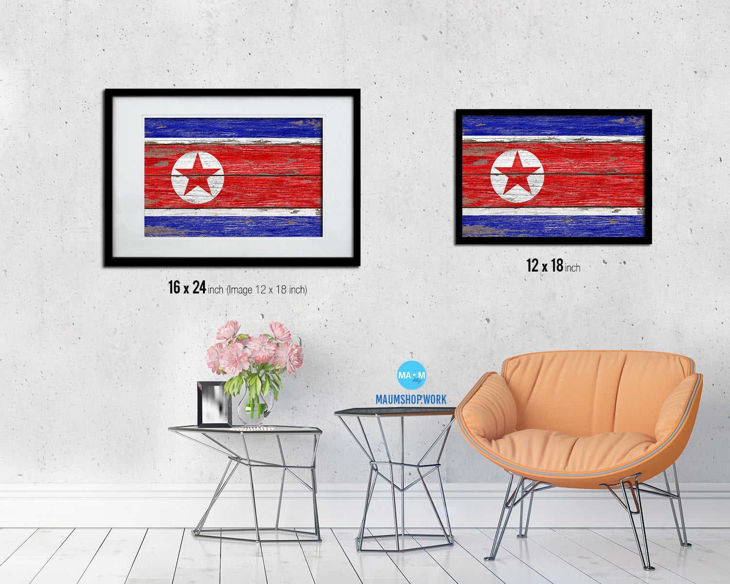 North Korea Country Wood Rustic National Flag Wood Framed Print Wall Art Decor Gifts