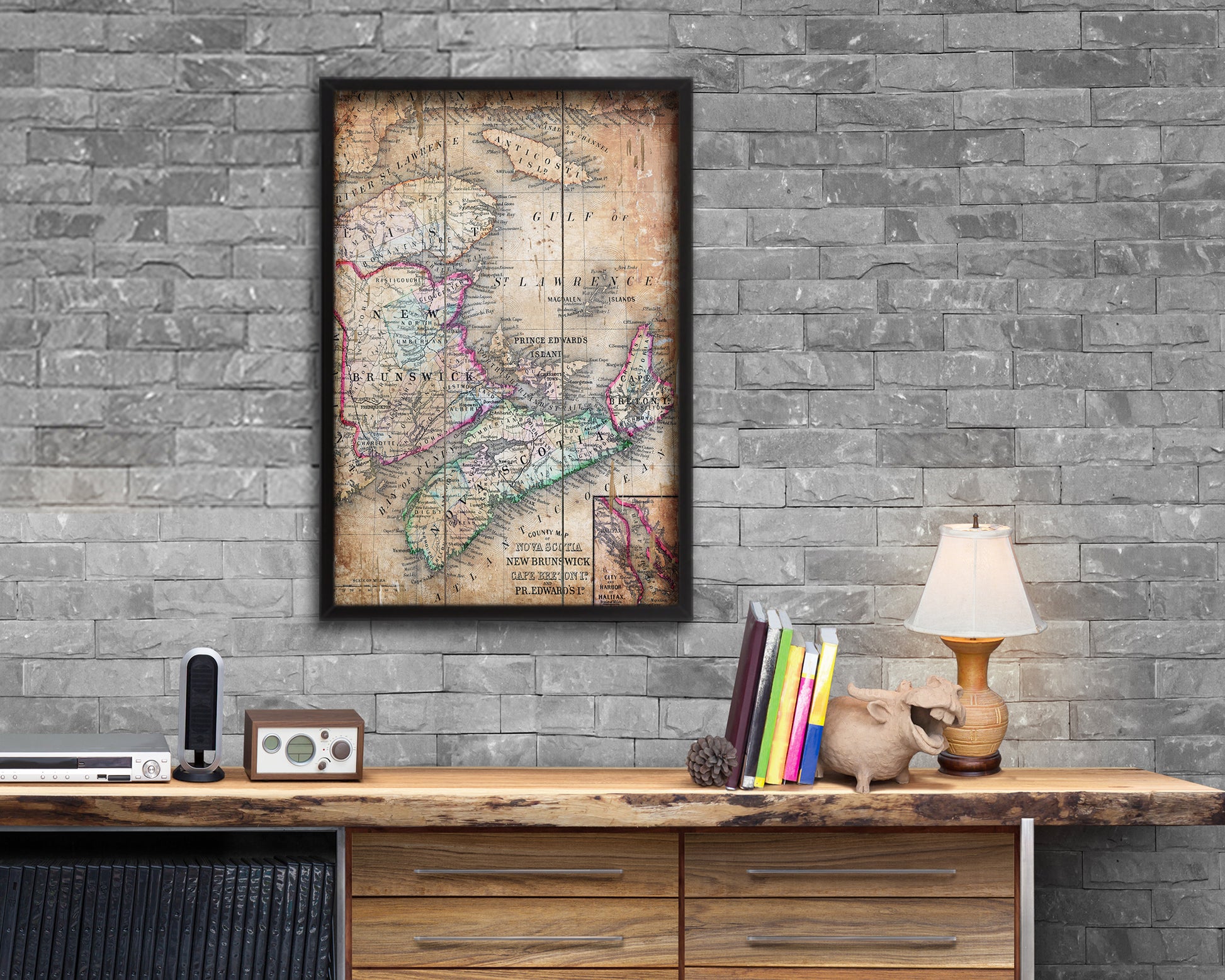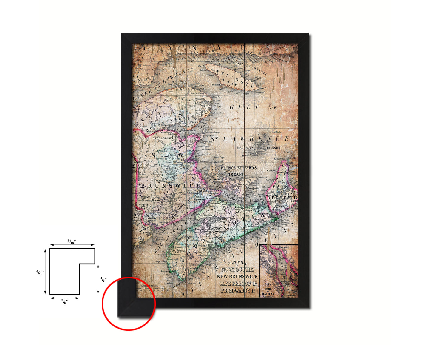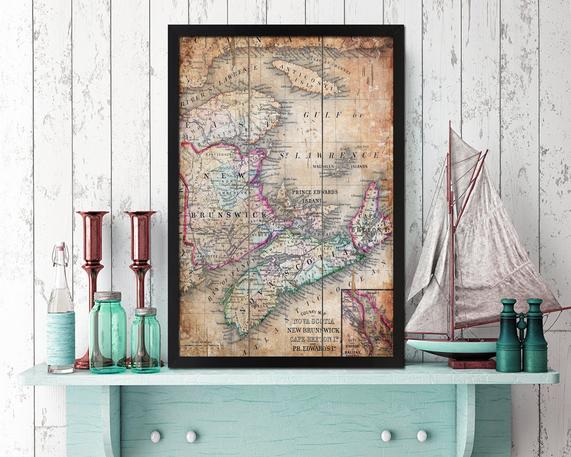 Nova Scotia New Brunswick Canada Antique Map Wood Framed Print Art Wall Decor Gifts