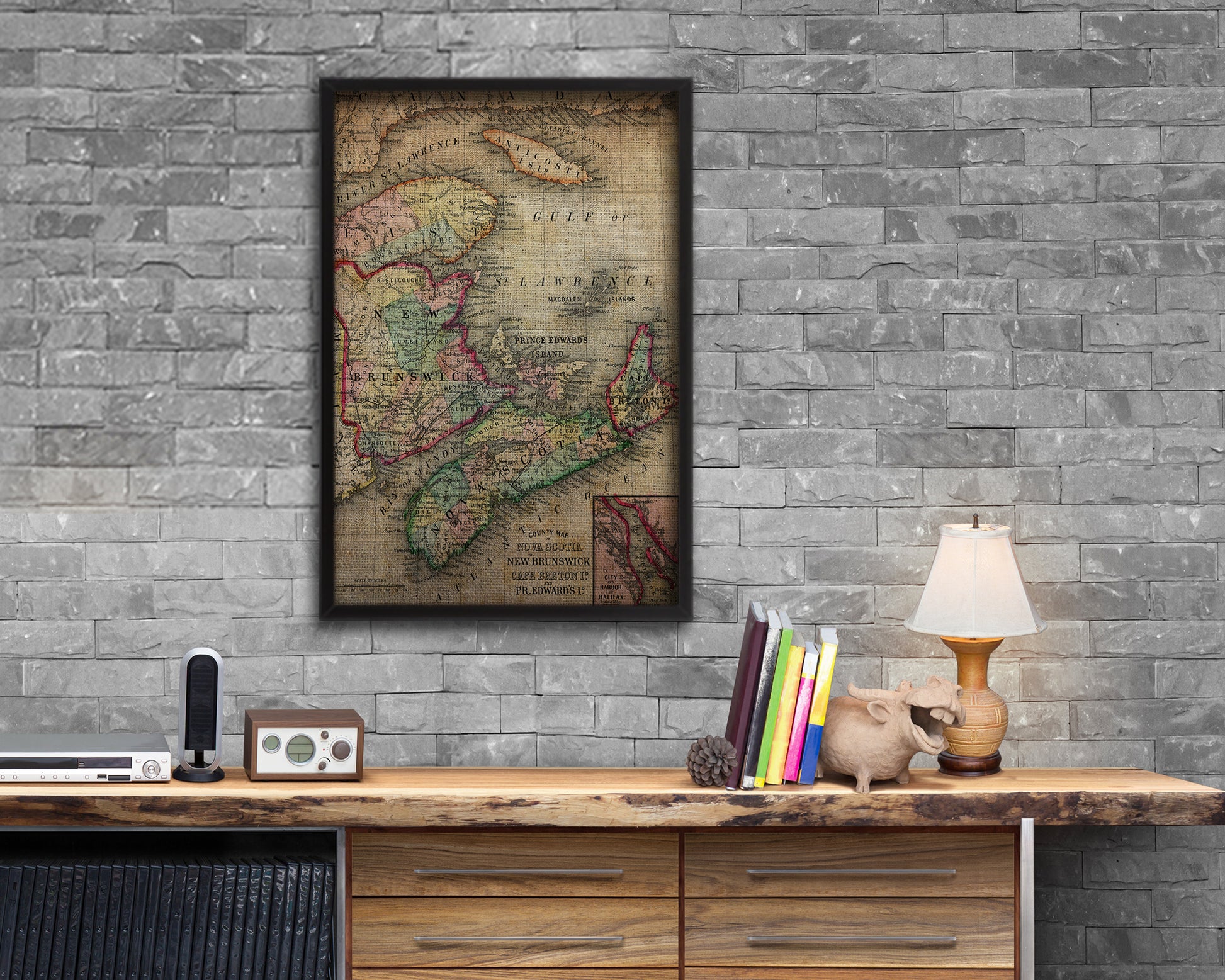 Nova Scotia New Brunswick Canada Vintage Map Wood Framed Print Art Wall Decor Gifts