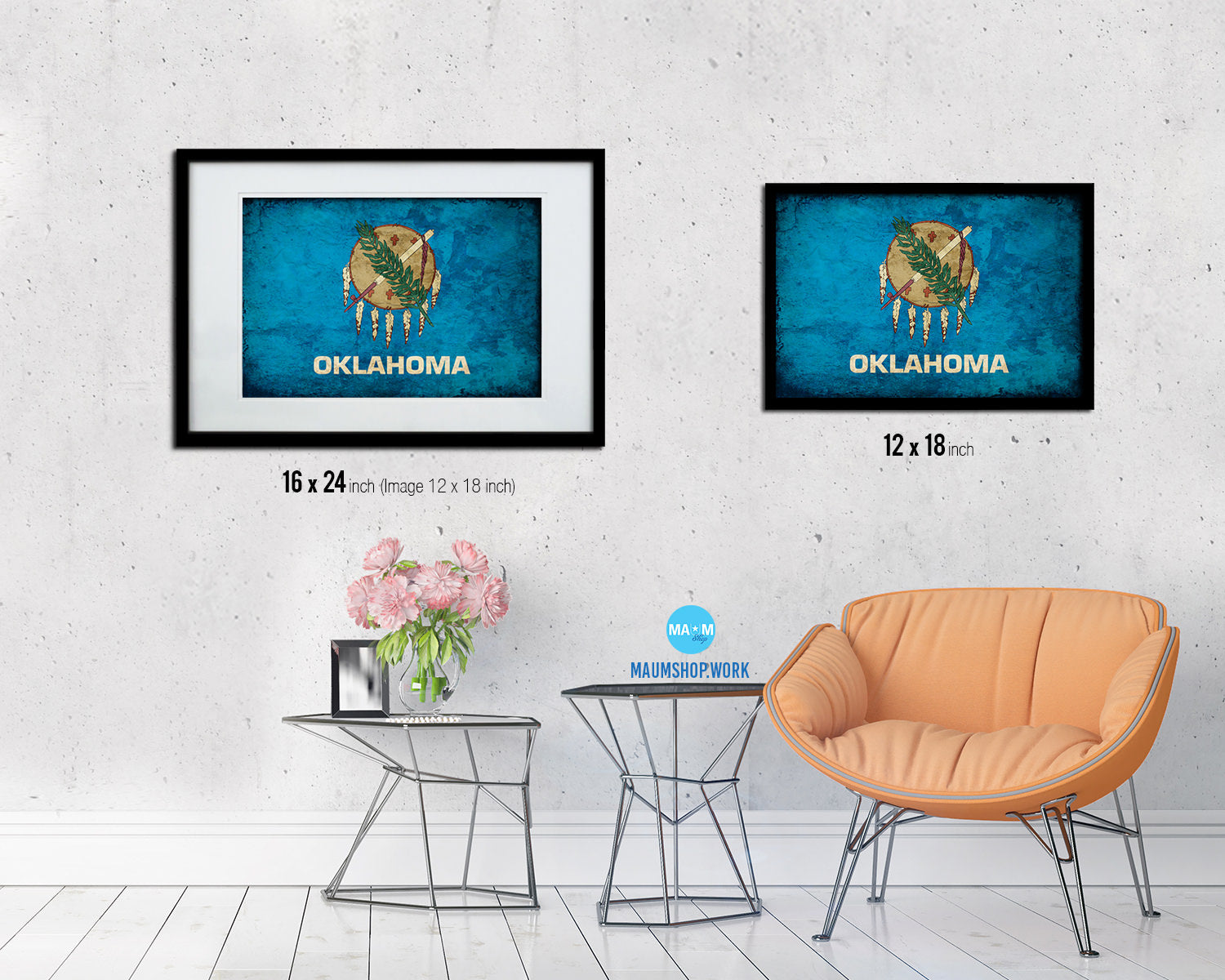 Oklahoma State Vintage Flag Wood Framed Paper Print Wall Art Decor Gifts
