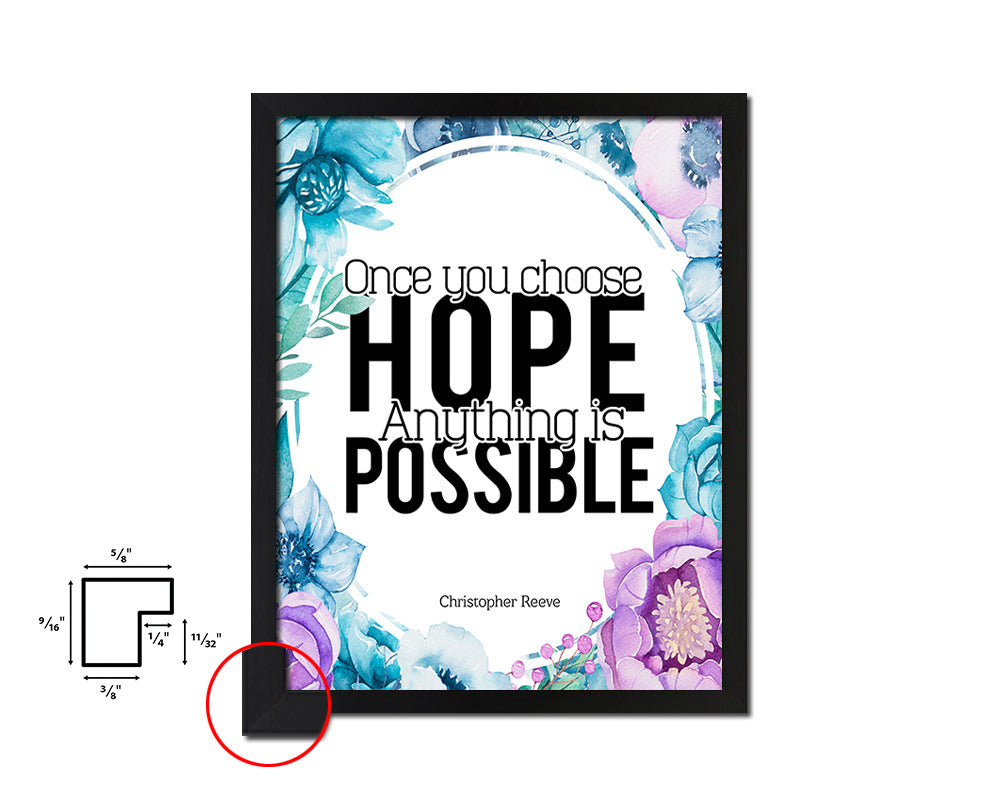 Once you choose hope anything is possible Quote Boho Flower Framed Print Wall Decor Art